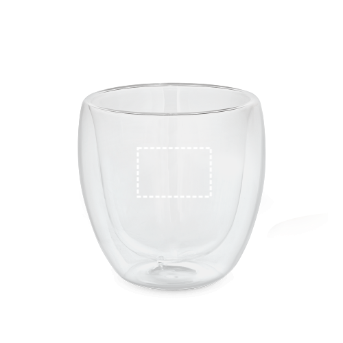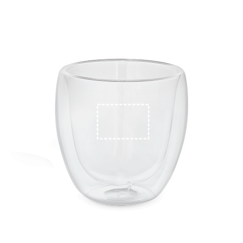 Isothermischer Becher aus Borosilikatglas (220ml), doppelwandig und luftisoliert. Geliefert in einer veredelbarer Geschenkschachtel. ø80 x 86 mm