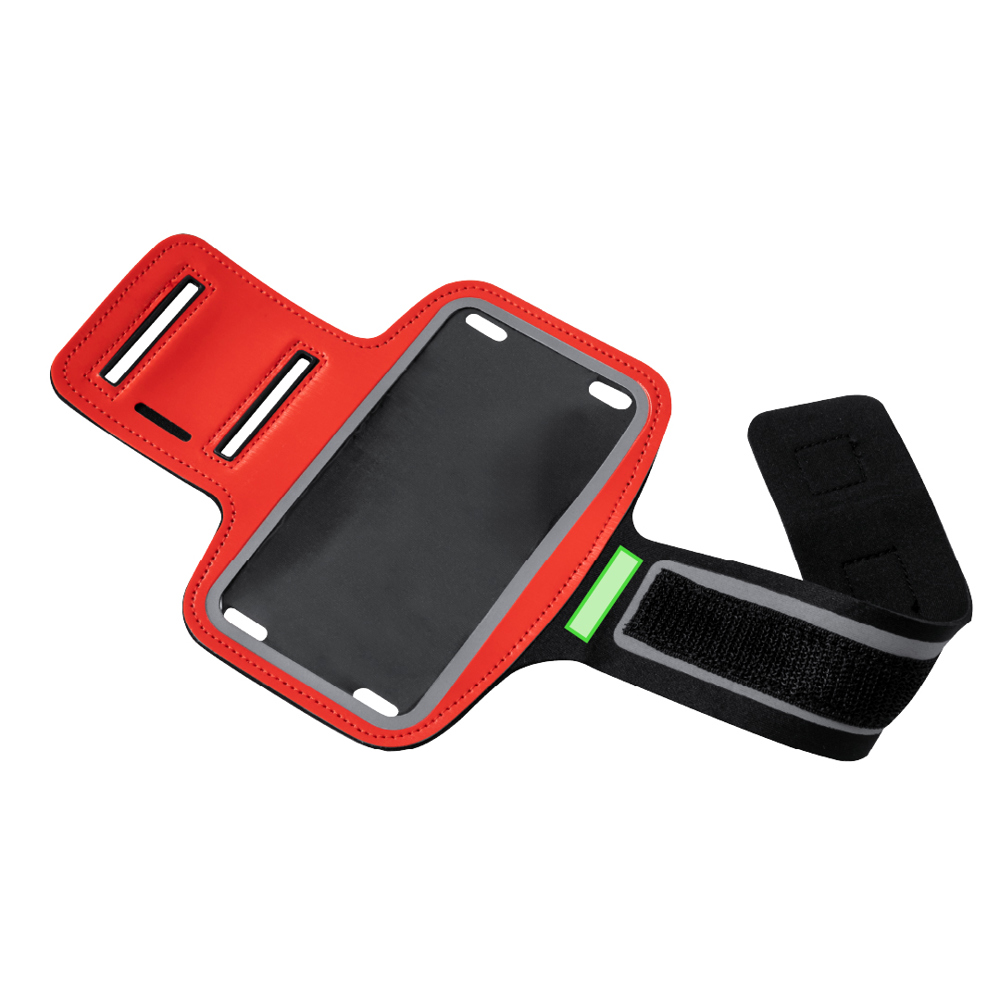 Taktiles Sportarmband, konzipiert für Geräte mit bis zu 6 Zoll Bildschirm. Reflektierende Vorderseite, mit verstellbarem, elastischem Verschlussband und Schlüsseltasche. Erhältlich in einer Reihe von Farben.