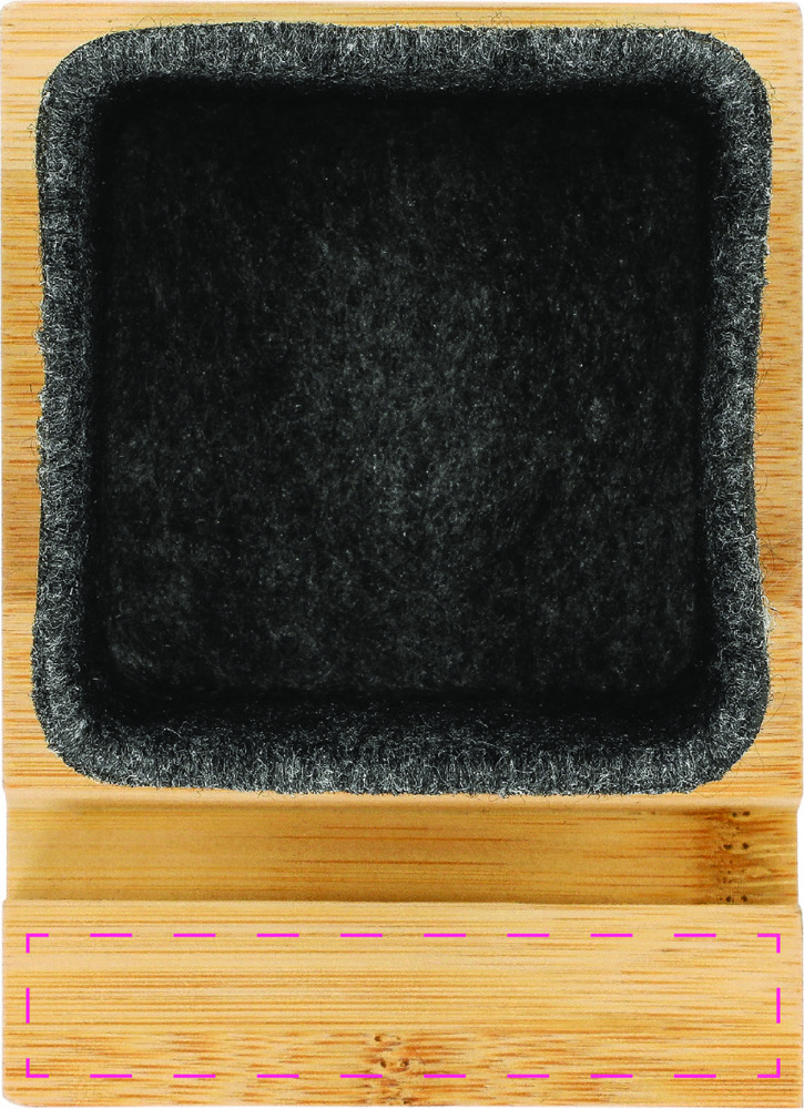 Aufbewahrungsbox „Kombo“ aus robustem Filz und nachhaltigem Bambus. Langlebig und vielseitig einsetzbar – ideal als Stiftehalter oder für kleine Utensilien. Der Bambuseinsatz verfügt über eine praktische Handyhalterung. Funktional, modern und umweltbewusst – perfekt für den Schreibtisch oder das Homeoffice.