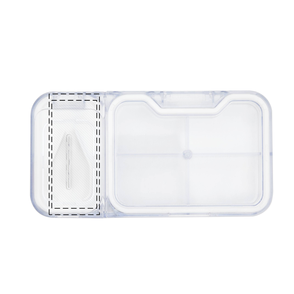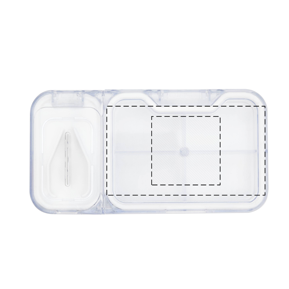 Tablettendose CUT IT: mit 2 separaten Fächern, 1 Fach mit integriertem Tablettenteiler sowie herausnehmbarer Silikoneinlage zum Zentrieren und Halten der Tablette, 1 Fach mit 4 Unterteilungen, transparent
