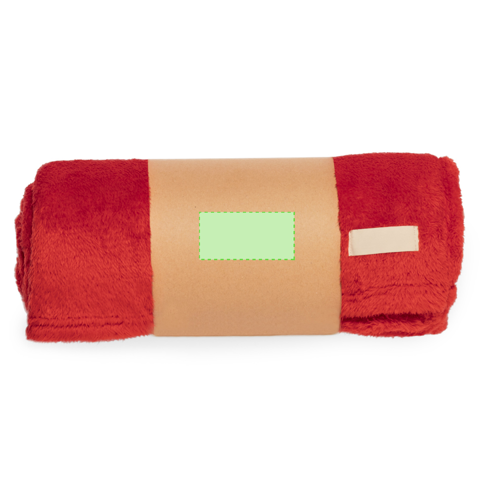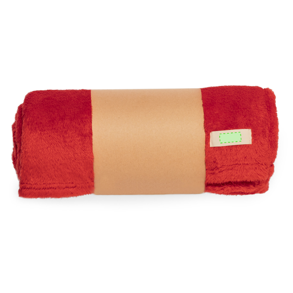 130x160cm Soft-Touch-Decke aus korallenrotem Fleece mit Anti-Pilling-Effekt 260g/m2. Inklusive genähtem Polyester-Gewebeaufnäher für das Branding. Erhältlich in einer breiten Palette von Farben. Einzeln verpackt in einer Hülle aus recyceltem Karton zum einfachen Bedrucken.