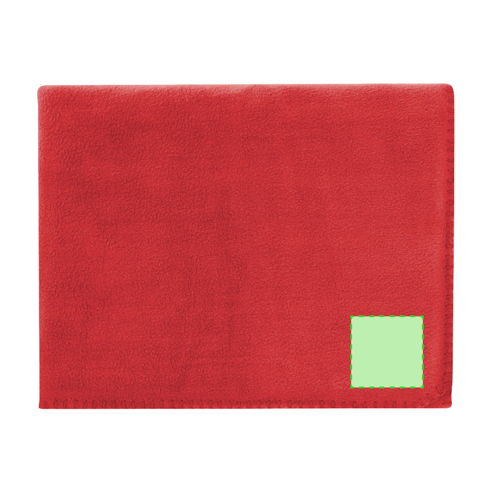 Decke 130 x 160 cm in verschiedenen hellen Farbtönen. Aus Polarfleece-Material von 200 g/m2 mit Antipilling-Behandlung und Tragegriff mit Klettverschluss aus weichem Polyester.