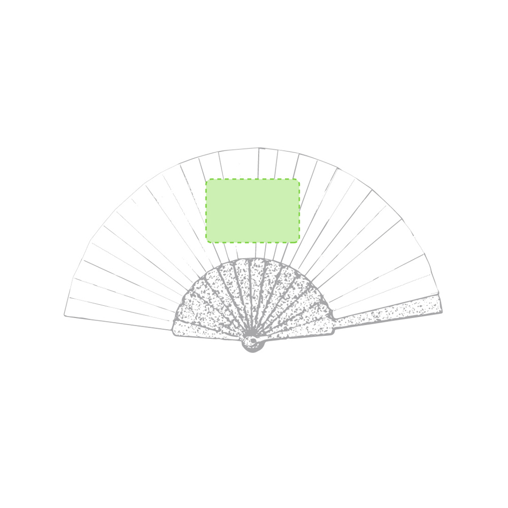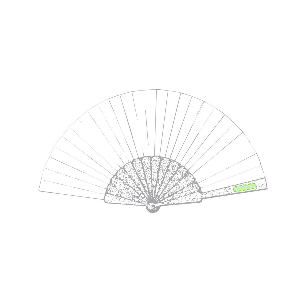 Fächer der Naturlinie mit Rippen aus Bambusfasern und Gewebe aus RPET-Material, das aus recyceltem Kunststoffmaterial gewonnen wird, um die Wiederverwendung von Kunststoffresten zu fördern und zur Nachhaltigkeit der Erde beizutragen. Präsentiert in einer individuellen, umweltfreundlichen Design-Box.