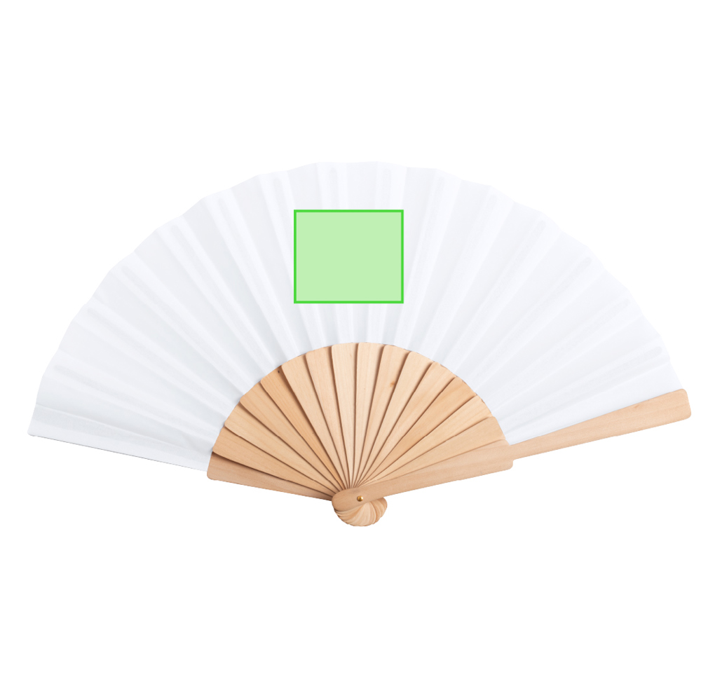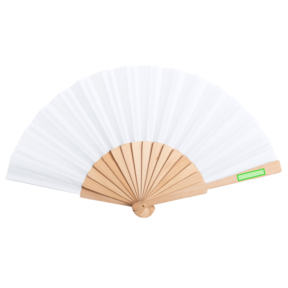 Fächer aus unserer Naturlinie mit Holzrippen und Gewebe aus RPET-Material, das aus recyceltem Kunststoffmaterial gewonnen wird, um die Wiederverwendung von Kunststoffresten zu fördern und zur Nachhaltigkeit der Erde beizutragen. Präsentiert in einer individuellen, umweltfreundlichen Design-Box.