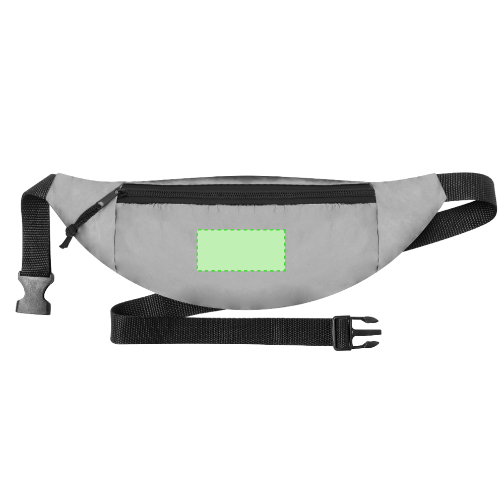 Gürteltasche aus widerstandsfähigem 210T Polyester. Hergestellt aus Gewebe mit hoher Lichtreflexionsfähigkeit dank Millionen reflektierender Pigmente und basierend auf dem Prinzip der Retroreflexion des Lichts, einer Eigenschaft der Nachtsichtbarkeit, die aus der Brechung des Lichts in Richtung der Quelle besteht gleich. Mit Reißverschlusstasche und verstellbarem Schnallenriemen. Konzipiert für Alltag und Freizeit. Wasserdicht..