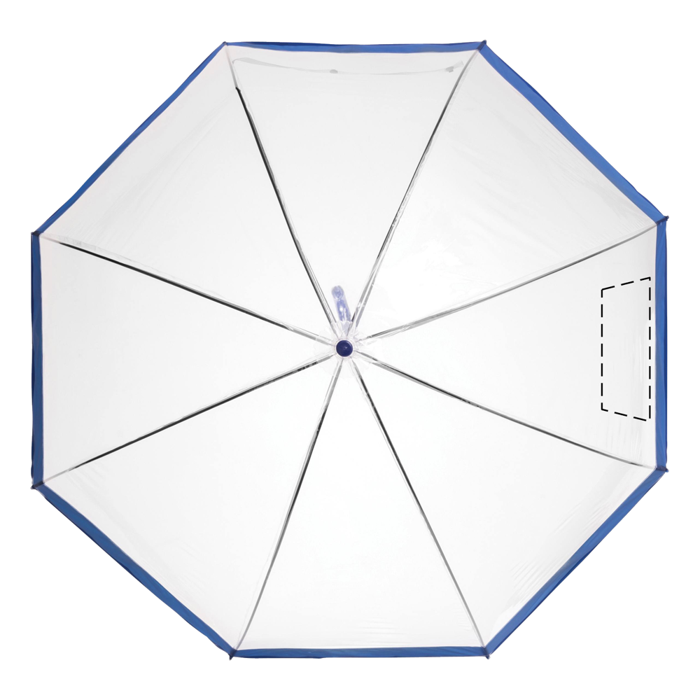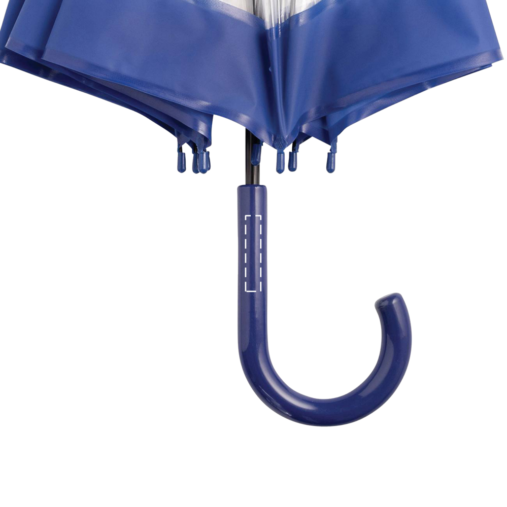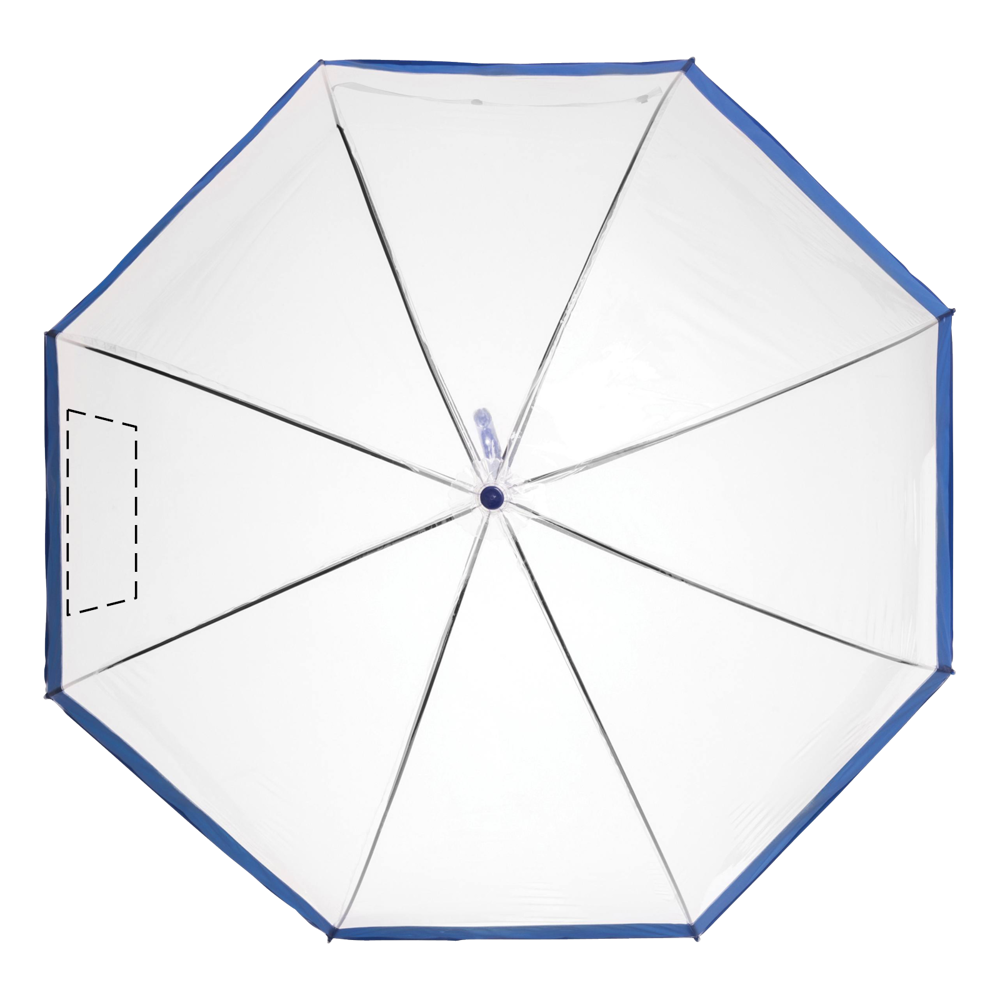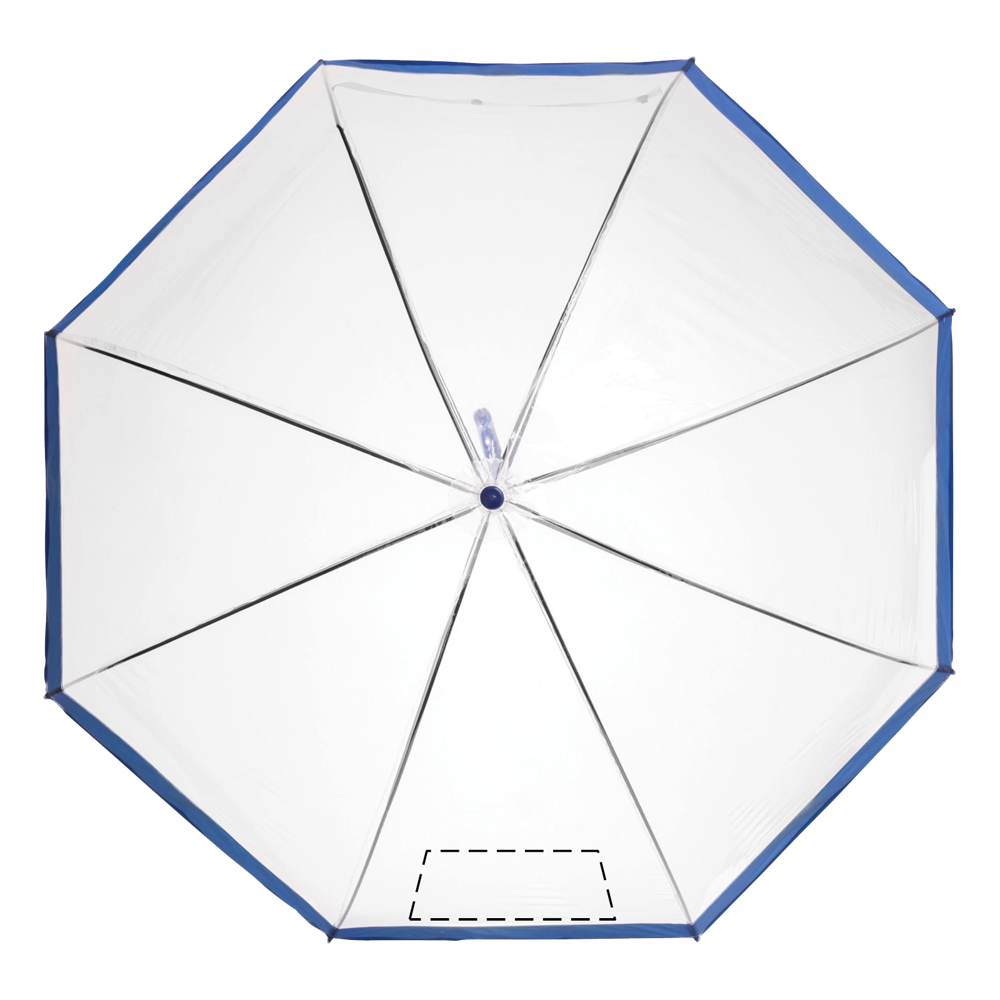 Glockenschirm HONEYMOON: Metallstock und –speichen, Kunststofftips und –spitze, Kunststoffrundhakengriff, transparente POE-Bespannung mit farbiger Bordüre, Schließband mit Druckknopf