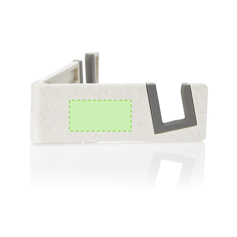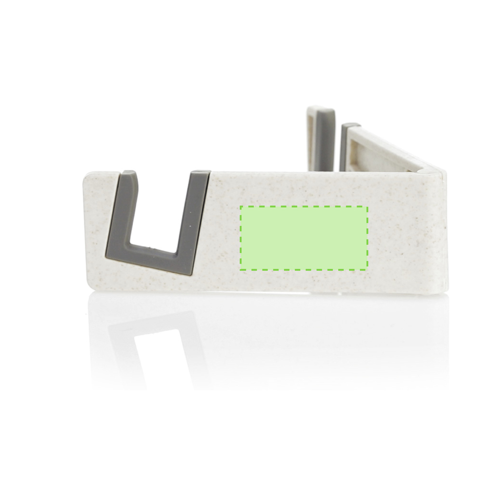Mobilgerätehalter aus der Naturlinie. Hergestellt aus Weizenrohr/PP, um die Verwendung natürlicher Rohstoffe zu fördern und Schadstoffemissionen zu reduzieren.Klappbare Füße mit rutschfesten PVC-Puffern, speziell für den Tampondruck entwickelt.
