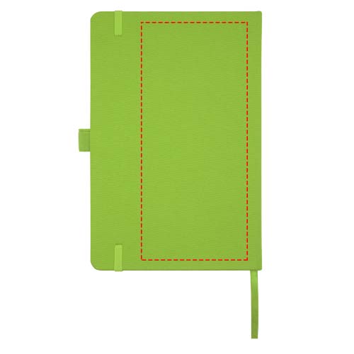 A5 Notizbuch mit einem Cover aus RPET. Mit 80 Blatt, 70 g/m² recyceltem Papier, liniert, und mit Stiftschlaufe und Leseband.