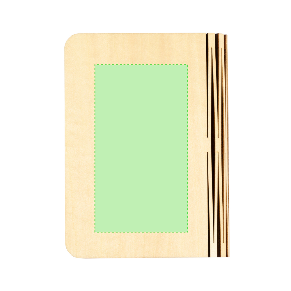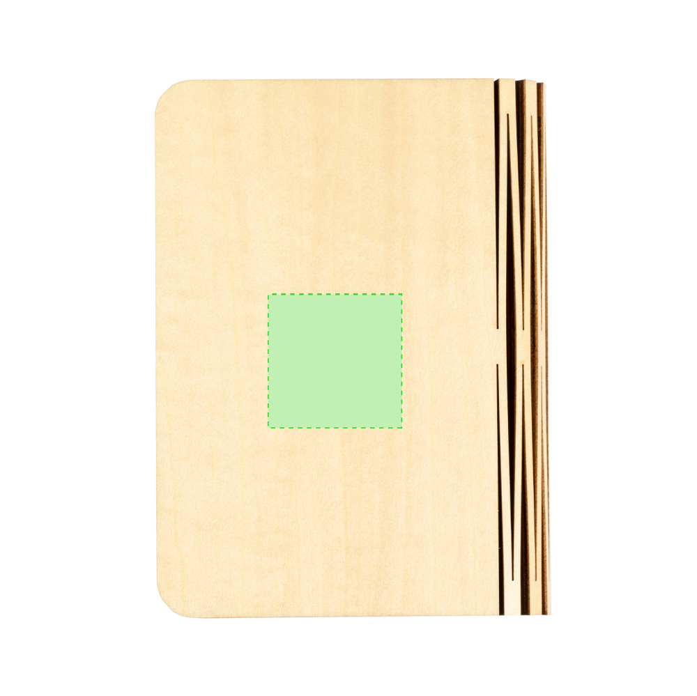 Echte tragbare LED-Lampe in Form eines Buches. Aus Holz, mit einem Innenraum, der Papierblätter simuliert, beleuchtet von 16 LEDs. Wiederaufladbar durch 700-mAh-Akku, inklusive USB-Ladekabel. Präsentiert in einer Kraft-Design-Box.
