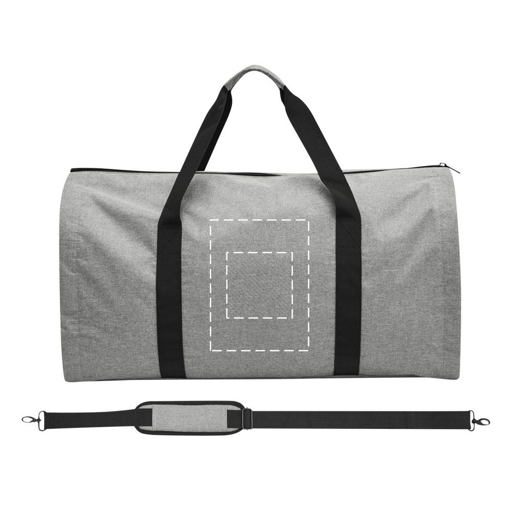 Reisetasche MILANO mit integriertem Kleidersack: 1 Reißverschluss-Hauptfach, 1 Reißverschluss-Seitentasche, 2 verstärkte Tragegriffe, verstell- und abnehmbarer Gurt mit Schulterpolster, Reporterfunktion auf der Rückseite, 4 Reißverschlüsse an den Seiten, um die Tasche vollständig zu öffnen, 1 Metall-Ring zum Aufhängen des Kleidersacks, innen 1 Reißverschluss-Hauptfach mit 3 Gurtbandschlaufen, um Bügel zu befestigen, 2 seitliche Einsteckfächer, 2 kleine Reißverschlussfächer und 1 großes Reißverschlussfach