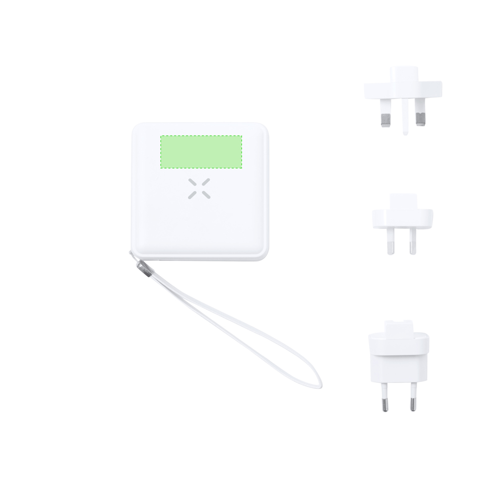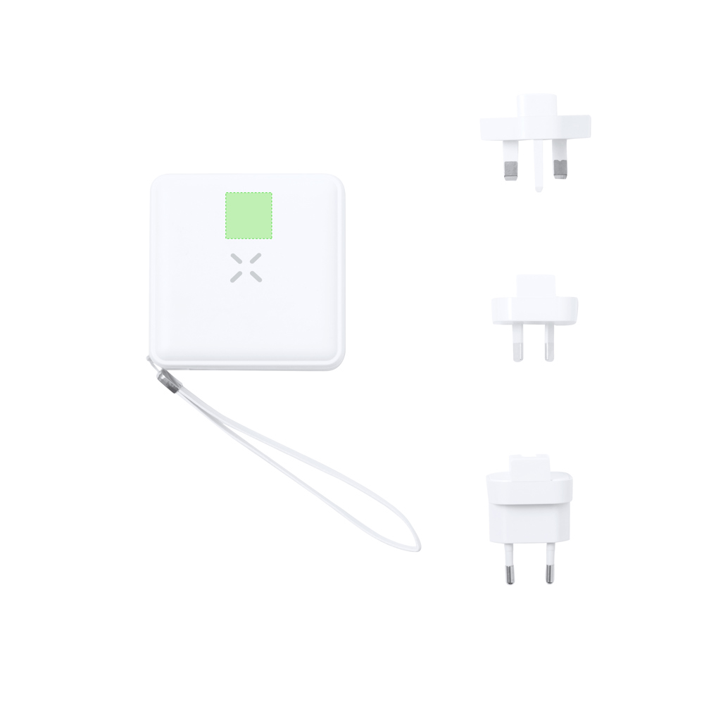 Kabelloser, multifunktionaler und vielseitiger Reiseadapter mit integrierter Powerbank mit 10.000 mAh Ladekapazität. Elegantes weißes Design mit großer Branding-Oberfläche. Kabellose Ladefunktion mit magsafe-Technologie, mit dualem Typ-C-Eingang/Ausgang und USB-Ausgängen. Zwei integrierte Ausgangskabel mit Lightning. Gleichzeitige Nutzung aller Funktionen, mit Steckdosenadaptern für USA, Europa, Asien, Großbritannien und Australien. Präsentiert in einer attraktiven Kraft-Design-Box. Gebrauchsanweisung in Englisch und Spanisch.Die angegebenen Kapazitäten aller unserer externen Zusatzbatterien sind real, denn es handelt sich um nicht recycelte Batterien der Klasse A mit einer Lebensdauer von mindestens 500 Ladezyklen, die den CE-Vorschriften entsprechen.Darüber hinaus werden sie gemäß den RoHS-Normen und unter Einhaltung der folgenden Sicherheitsanforderungen hergestellt:Überladungsschutzsystem der Powerbank.Vollständiges Entladeschutzsystem, das die Lebensdauer der Powerbank erhöht.Blockiersystem zur Vermeidung von Kurzschlüssen.Konstantes Ladetransfersystem, entsprechend der Kapazität des Zielgeräts.