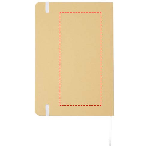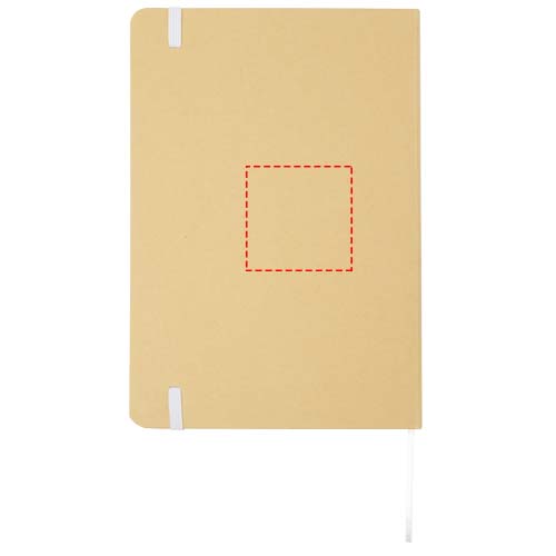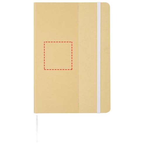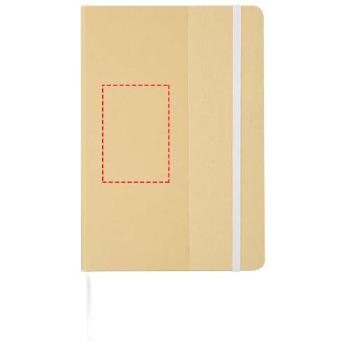 Hardcover Notizbuch im Format A5 aus recyceltem Karton mit 80 Blatt liniertem 70 g/m² Papier. Das Notizbuch hat einen elastischen Verschluss, ein Lesebändchen und abgerundete Ecken.