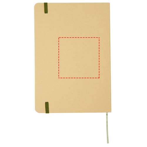 Hardcover Notizbuch im Format A5 aus recyceltem Karton mit 80 Blatt liniertem 70 g/m² Papier. Das Notizbuch hat einen elastischen Verschluss, ein Lesebändchen und abgerundete Ecken.