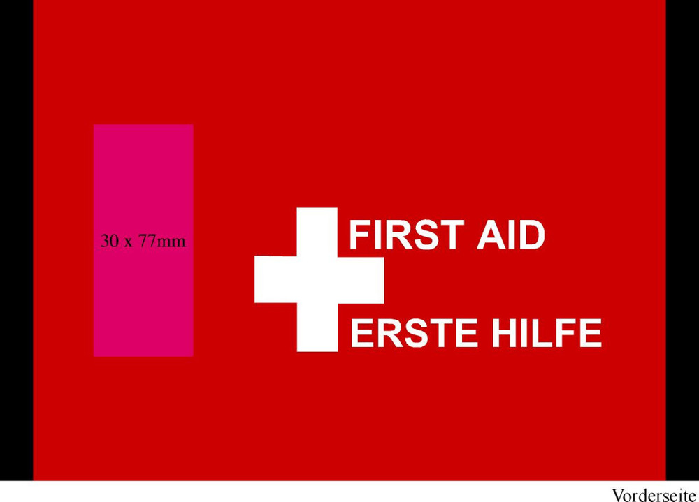 Polyester-Tasche mit 3 transparenten Innenfächern und Rundumreißverschluss. Befüllt mit Qualitäts-Artikeln. Heftpflaster, Wundschnellverband, Pflasterstrips, Verbandpäckchen, Kompressen, Fixierbinde, Schere, Einmalhandschuhe.