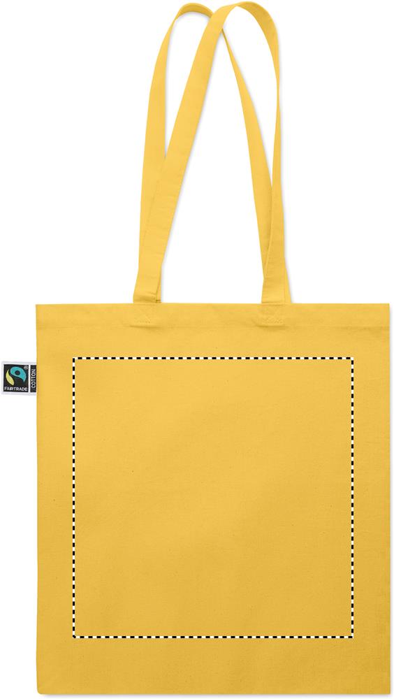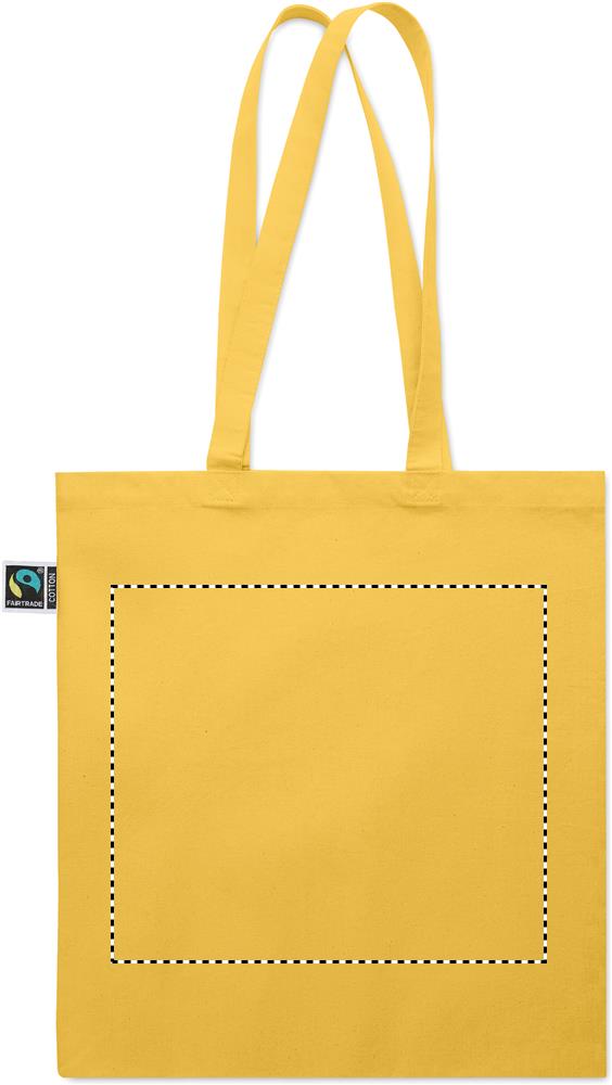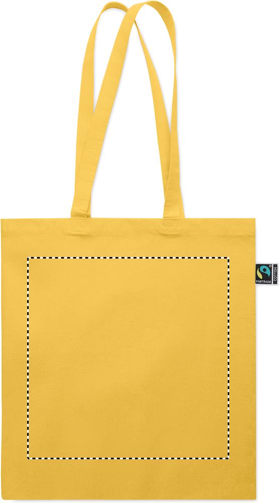 Einkaufstasche aus Fairtrade-Baumwolle mit langen Tragegriffen und Bodenfalz. 180 g/m².
