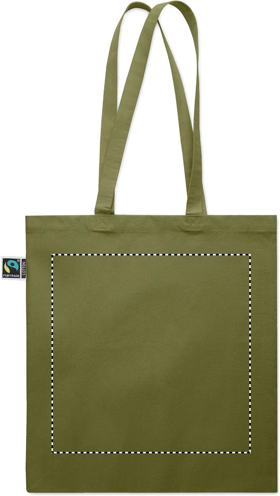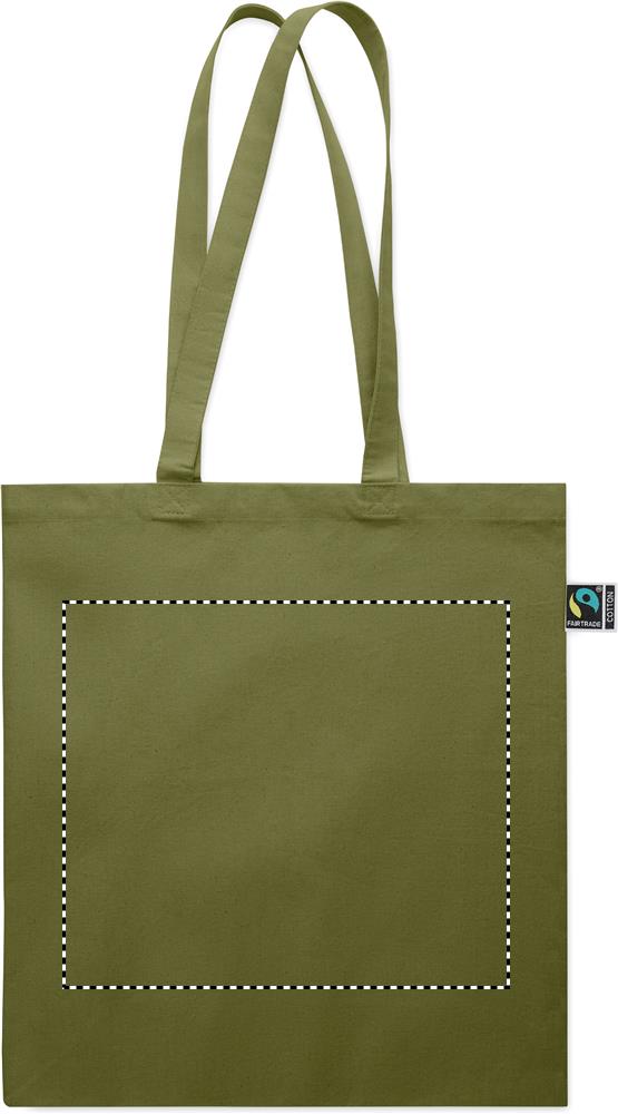 Einkaufstasche aus Fairtrade-Baumwolle mit langen Tragegriffen und Bodenfalz. 180 g/m².