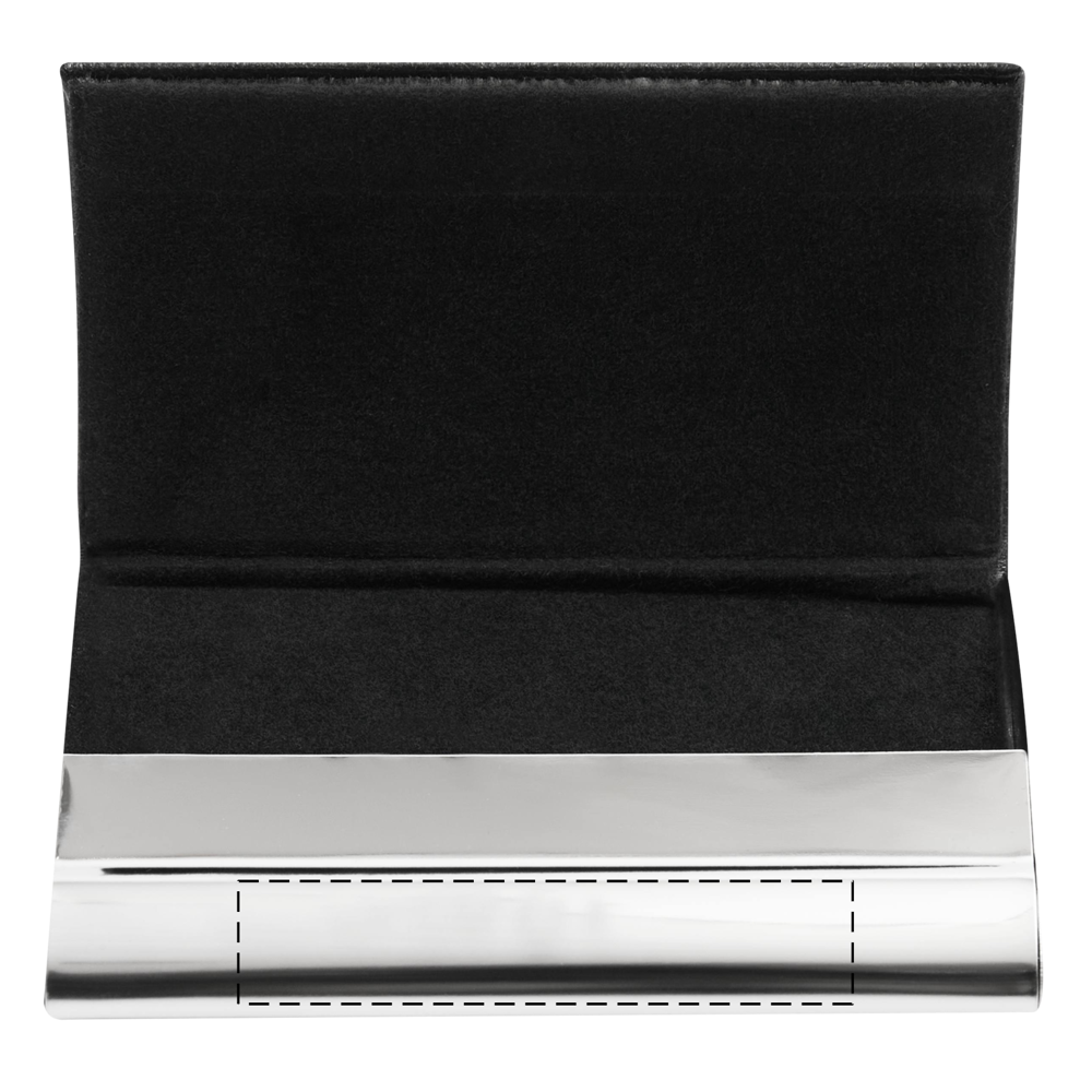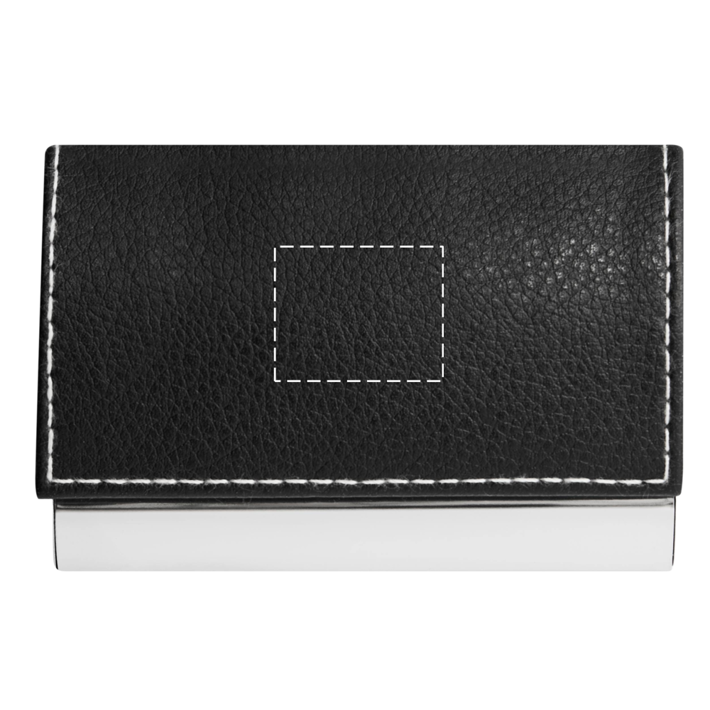 Visitenkartenetui PIET: innen mit samtigem Stoff ausgelegt, um Visitenkarten zu schützen – außen glänzender Boden mit Zinklegierung und Deckel in Echtleder-Optik mit Ziernaht, mit magnetischem Verschluss, in Box