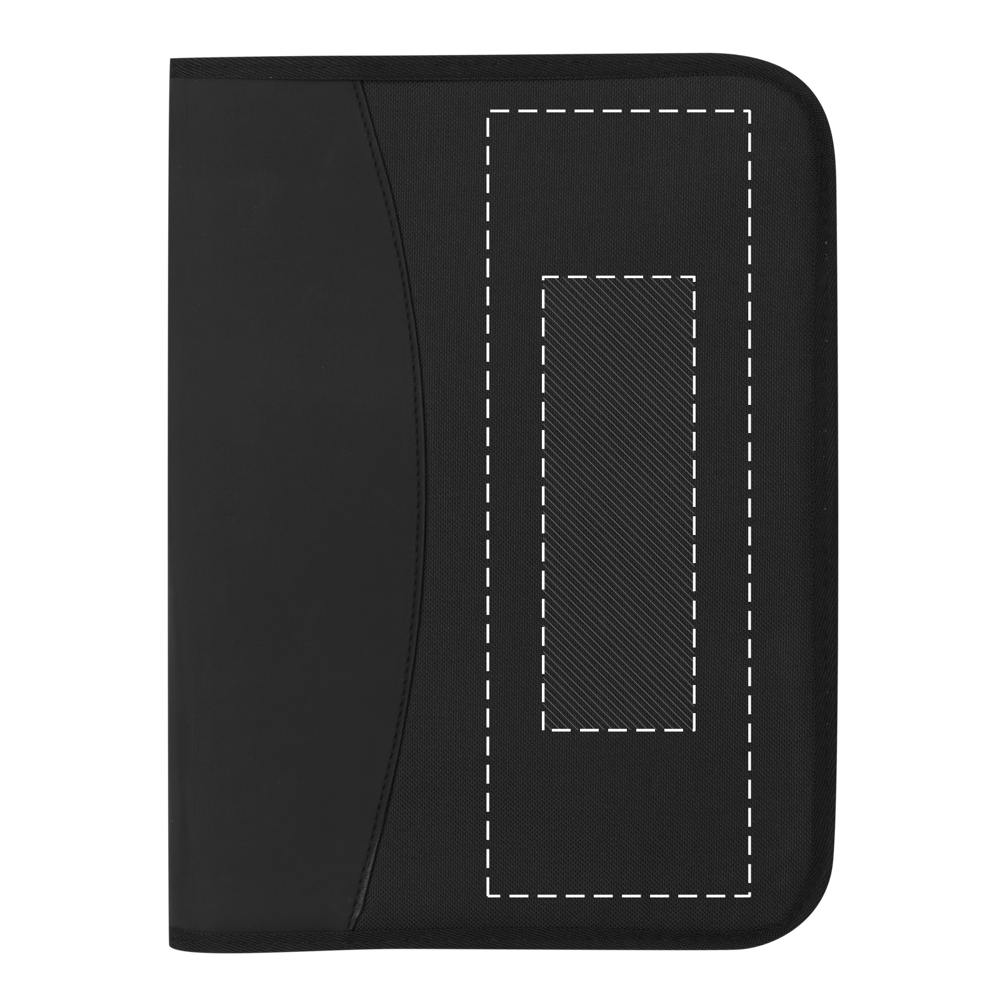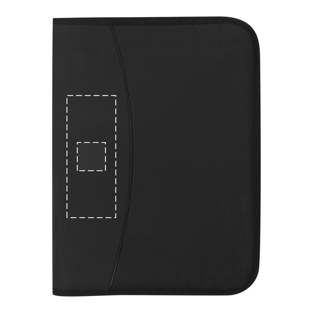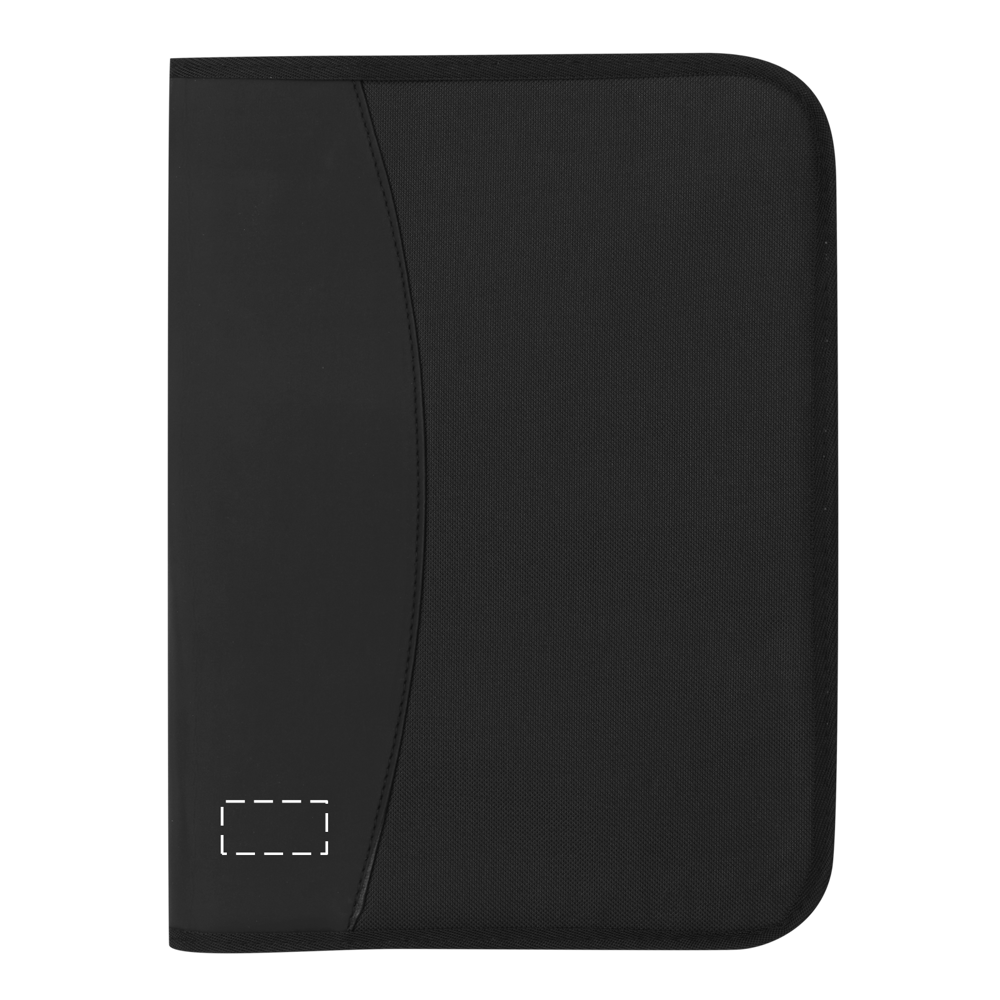 Portfolio SYMPOSIUM im DIN-A4-Format: umlaufender Reißverschluss zum Verschließen, innen diverse Einsteckfächer, 1 Klarsichtfach, 1 Reißverschluss-Innenfach, inkl. Schreibblock (blanko), Schlaufe für 1 Schreibgerät
