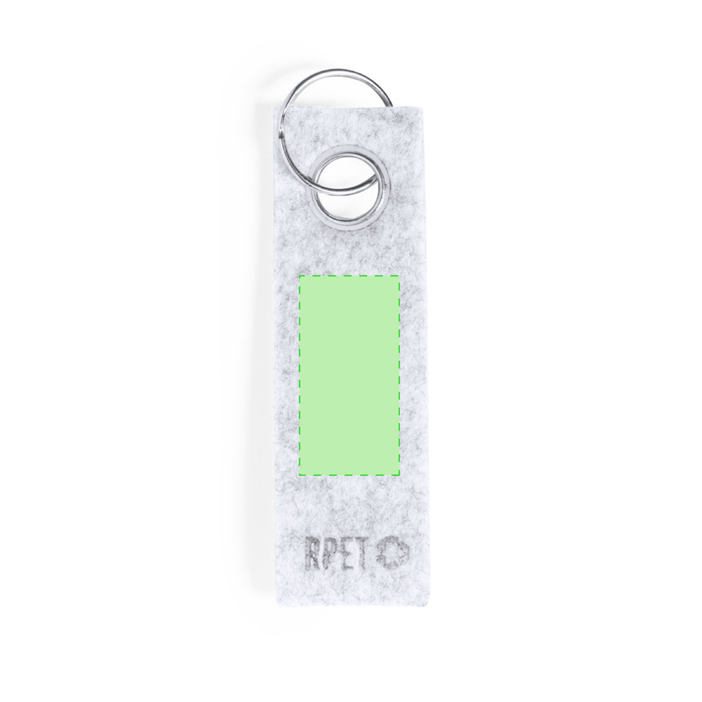 Eleganter Schlüsselanhänger mit Filz-RPET-Band und verchromter Metallöse. Mit dem unverwechselbaren Felt RPET auf dem Band und dem verchromten Metallring. Felt RPET ist das Ergebnis der Kombination der Recyclingprozesse von Kunststoffen mit der jahrtausendealten Technik der Filzherstellung, was zu einem Öko-Trend-Material führt, das nicht nur recycelten Ursprungs ist, sondern auch wiederverwertet werden kann.