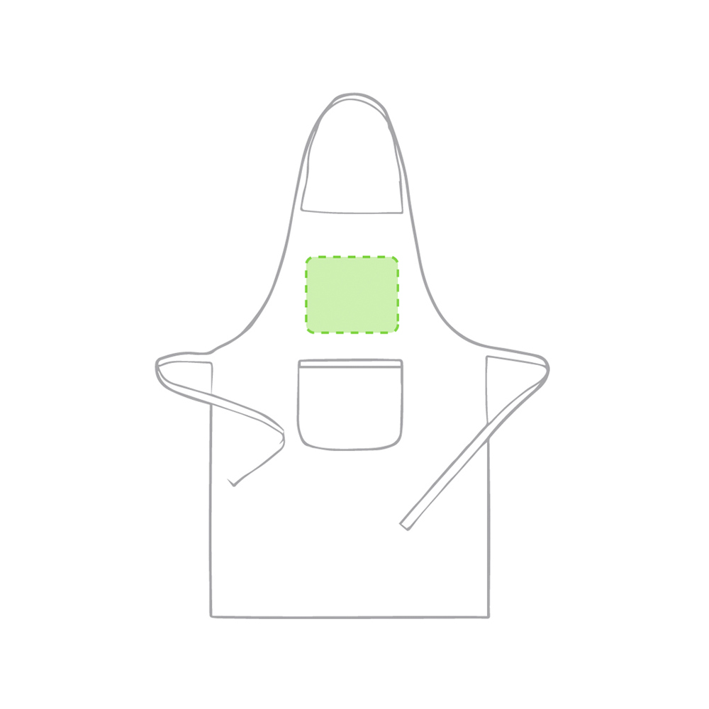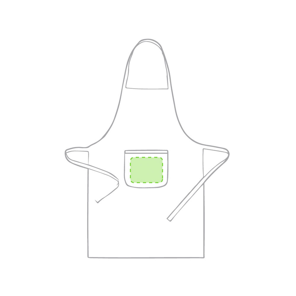 Schürze aus einer Kombination von Baumwolle und Polyester namens TC. Auf der Vorderseite befindet sich eine praktische Tasche, verstellbare Riemen an der Taille und ein Schnitt unterhalb des Knies. Erhältlich in einer breiten Palette von Farben.
