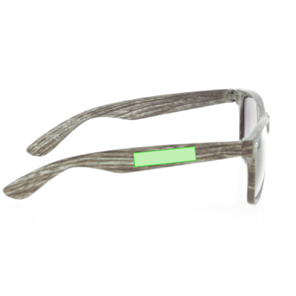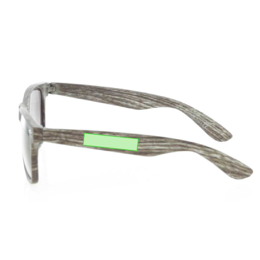 Sonnenbrille mit UV-400-Schutz und klassischem Design. Mit Rahmen aus einer Naturholz-Imitation sowie farblich passenden Gläsern.