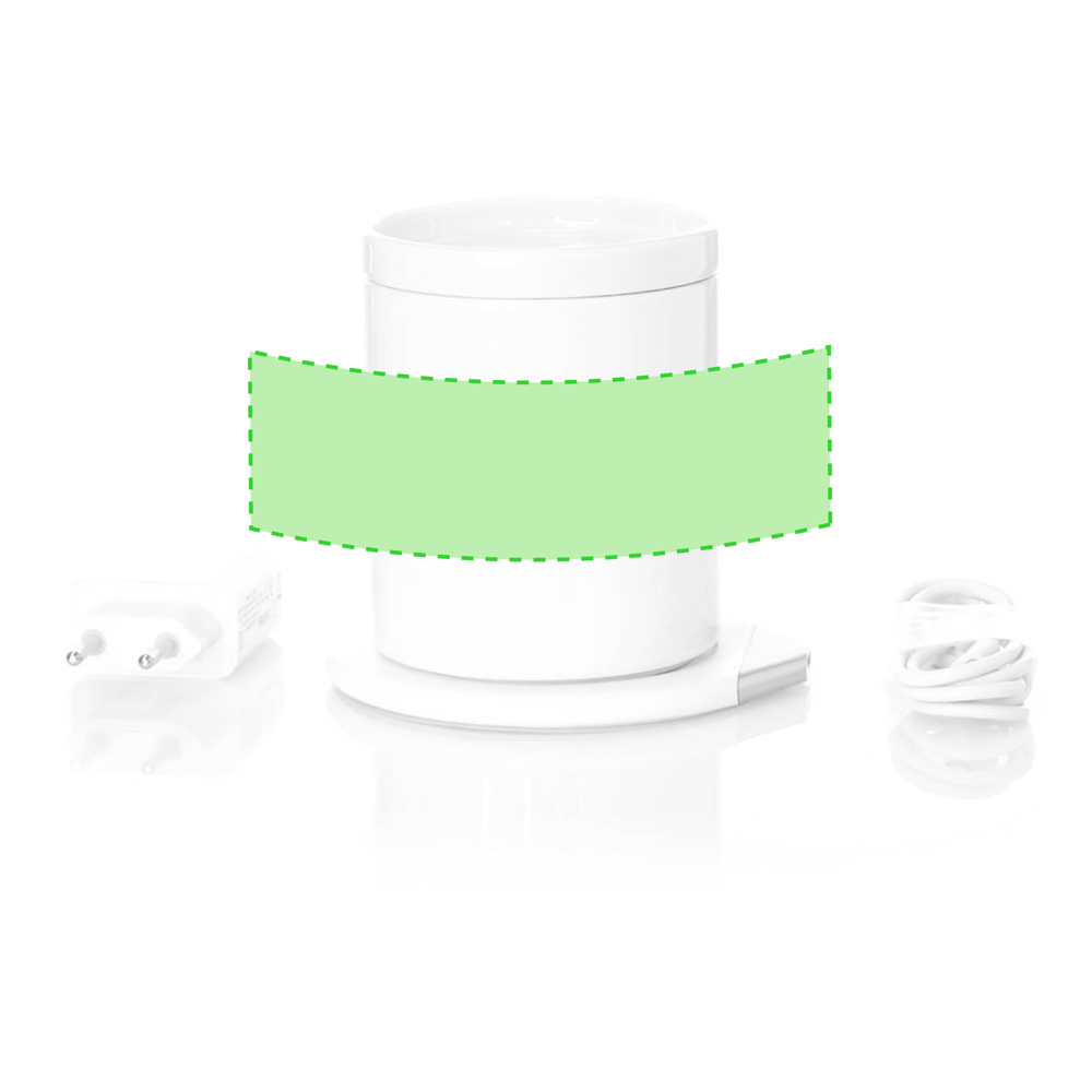 Becherheizgerät mit eingebautem, kabellosen Ladegerät für Schnellladung -10W-. Einschließlich eines 350-ml-Keramikbechers, der speziell für die Erwärmung und Temperaturerhaltung des Getränks entwickelt wurde, mit passendem Deckel. Wandstecker und Kabel Typ C. Das Set wird in einer attraktiven Design-Box präsentiert.