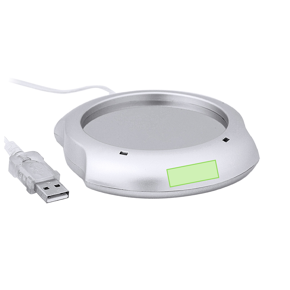 Tassenwärmer mit USB-Anschluss und Metalloberfläche, die speziell entwickelt wurde, um Hitze zu speichern. In elegantem Grau und kompatibel mit Tassen mit einem Durchmesser von bis zu 7,4 cm. Mit Schalter auf der Rückseite und Statusleuchte. Präsentiert in einer individuellen Box.