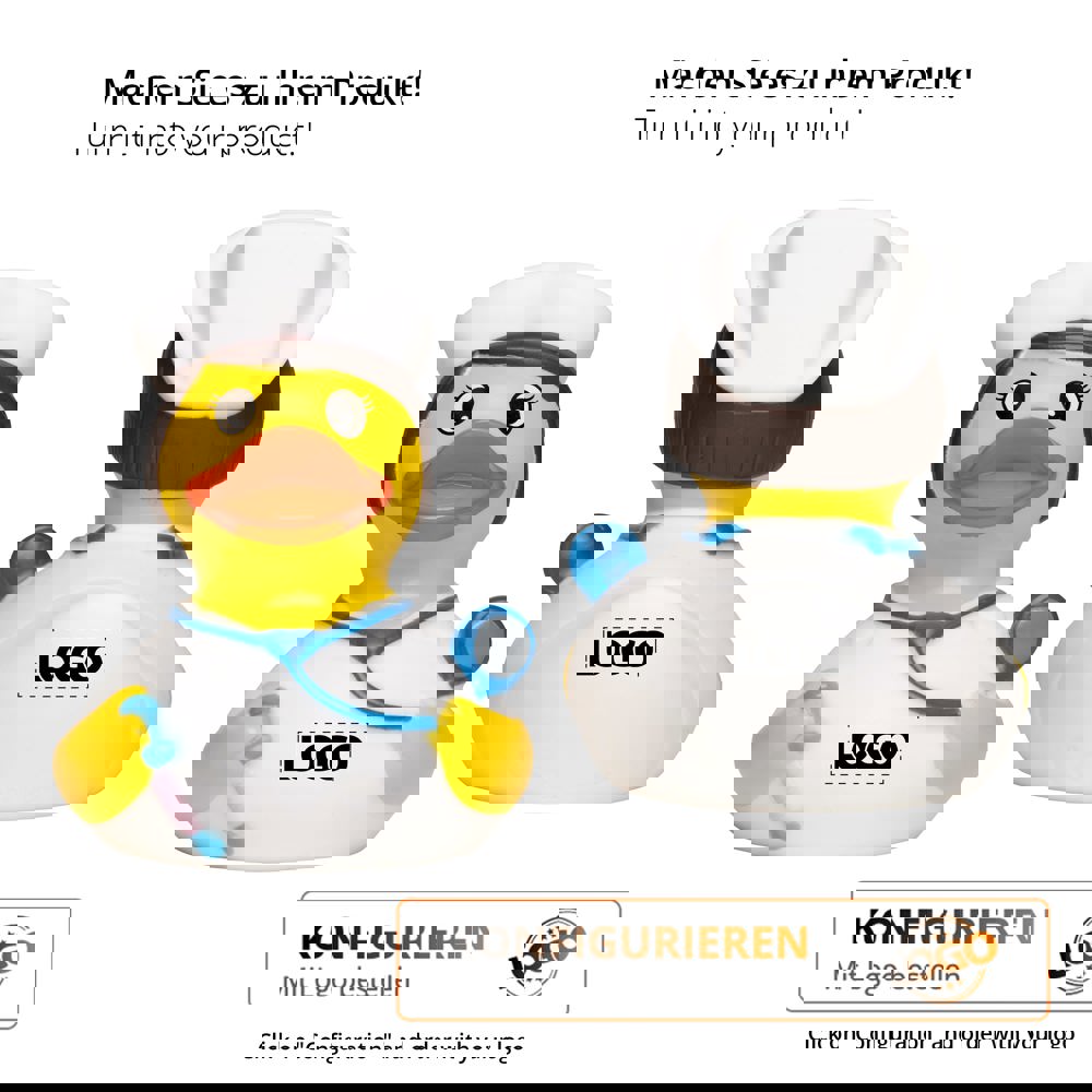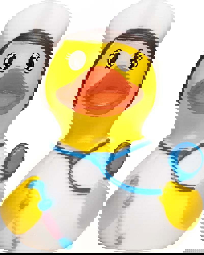 Ihnen geht es nicht gut? Diese Ente sorgt für Ihr Wohlergehen – und was könnte da besser helfen, als ein richtig schön entspanntes Bad? Und wenn das mal nicht reichen sollte, kennt sie auf jeden Fall noch ein paar Heilmittelchen, mit denen sie Sie ganz schnell wieder auf die Beine bringt – und keine Sorge, die Spritze, die sie dabei hat, tut auch nicht mal ein klitzekleines bisschen weh! Die weiße Krankenschwesterkluft mit dem großen, roten Kreuz gehört natürlich auch dazu.