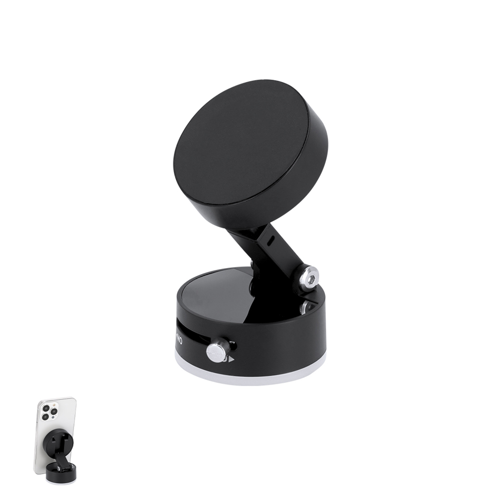 Magnetischer Telefonhalter in ABS. Saugnassbefestigung mit EIN/AUS-Ein/Aus-Ein/Aus-Knopf. Beinhaltet einen magnetischen Metallring. Er verfügt über einen verstellbaren einziehbaren Ständer, ideal als Lösung, um Ihr Gerät stabil und vielseitig auf jeder Oberfläche zu sichern.
