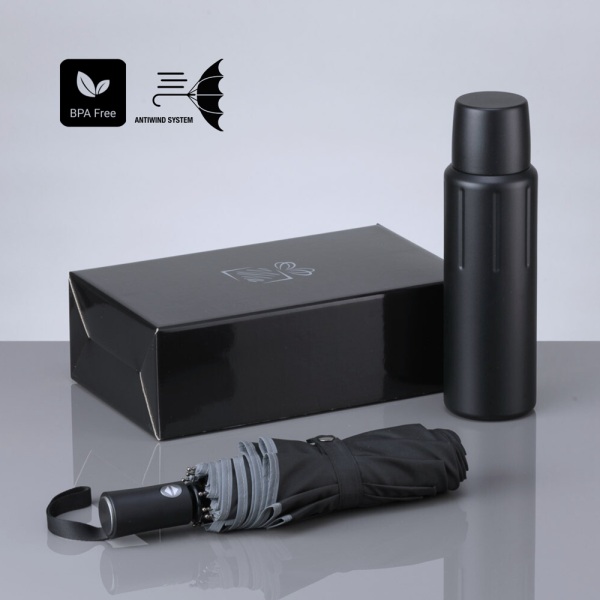 Ein praktisches Set aus einem leistungsstarken Thermosbehälter und einem robusten Schirm – ideal für den Alltag oder auf Reisen. Der Thermosbehälter aus hochwertigem koreanischem POSCO 18/8 Edelstahl mit Kupfer hält Getränke bis zu 8 Stunden heiß oder bis zu 12 Stunden kalt und verfügt über einen 2-in-1-Deckel mit Becherfunktion sowie einen auslaufsicheren Verschluss. Der Schirm bietet ein stabiles Gestell aus Stahl und Fiberglas, eine automatische Öffnungs- und Schließfunktion, einen Windschutzmechanismus und reflektierende Elemente für mehr Sicherheit.
