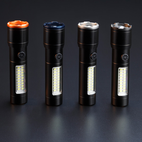 die ideale LED-Leuchte für alle, die Funktion und Design vereinen wollen. Mit bis zu 600 Lumen Leuchtkraft, COB-Technologie, drei Lichtmodi und einem integrierten Blinklicht bietet sie maximale Flexibilität im Alltag, auf Reisen oder im Job. Das hochwertige Aluminiumgehäuse liegt griffig in der Hand, ein robuster Clip sowie ein starker Magnet sorgen für variable Befestigung. Neu: Der eloxierte Aluminiumring an der Front ist in vier Farben erhältlich – Silber, Orange, Blau oder Schwarz – für mehr Individualität bei gleichbleibender Leistung. Geladen wird die Torchy bequem via USB-C, der integrierte Lithium-Akku macht Batterien überflüssig. Verpackt im Soft-Shell-Etui inklusive Ladekabel – perfekt als hochwertiges Werbegeschenk.