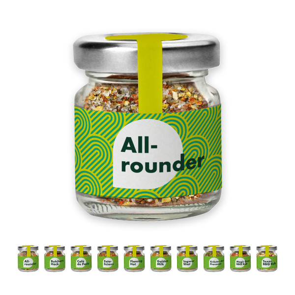 Das Genussglas Mini First im Mini-Format wird mit den beiden beliebten Sorten Flaming Hot oder Texas BBQ Rub befüllt und eignet sich ideal für vielseitige Einsätze. Ein individuell gestaltetes 4c-Etikett macht das Glas zu einem klaren Markenbotschafter und sorgt für eine professionelle Erscheinung. Durch das handliche Format, den hohen Alltagsnutzen und die langlebige Glasverpackung ist das Bügelglas Mini First bestens geeignet als Kundengeschenk, Mitarbeiterpräsent oder Genussartikel für Events und Aktionen.