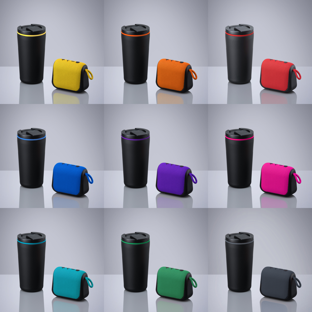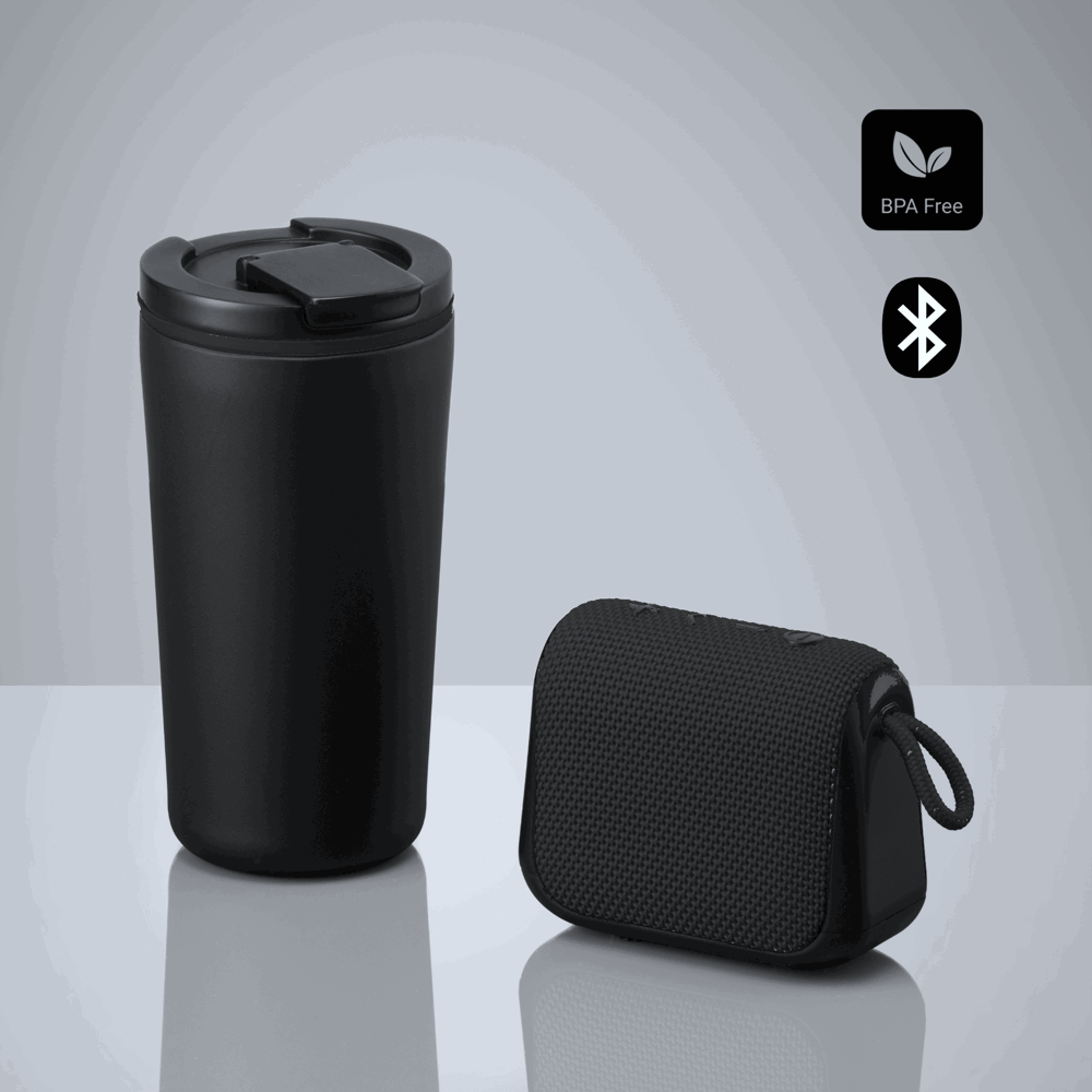 Ein praktisches Set, das einen schlanken Thermobecher mit einem kompakten kabellosen Lautsprecher kombiniert – ideal für den täglichen Gebrauch. Der Becher aus hochwertigem POSCO-Edelstahl hält Getränke heiß oder kalt, während die farbige Silikondichtung für einen auslaufsicheren Verschluss sorgt. Der tragbare Bluetooth-Lautsprecher bietet bis zu 8 Stunden Wiedergabezeit, besteht aus robustem Silikon und ABS und verfügt über eine praktische Schlaufe zum Tragen oder Befestigen.