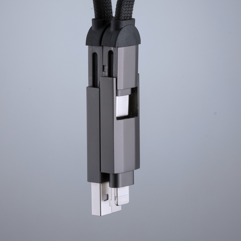Dieses kompakte 4-in-1-Ladekabel im Schlüsselanhänger-Design mit USB-A- und USB-C-Eingängen sowie USB-C- und Lightning-Ausgängen unterstützt Schnellladen bis zu PD 60W und USB-2.0-Datenübertragung (bis zu 480 Mbit/s) in einem robusten, geflochtenen 1,2-m-Design. Mit Kevlar verstärkt, mit Steckern aus Zinklegierung, integrierter Staubschutzkappe sowie CE-EMC- und RoHS-Konformität ist es die ideale All-in-One-Lösung für Reisen, Pendeln und den Alltag.