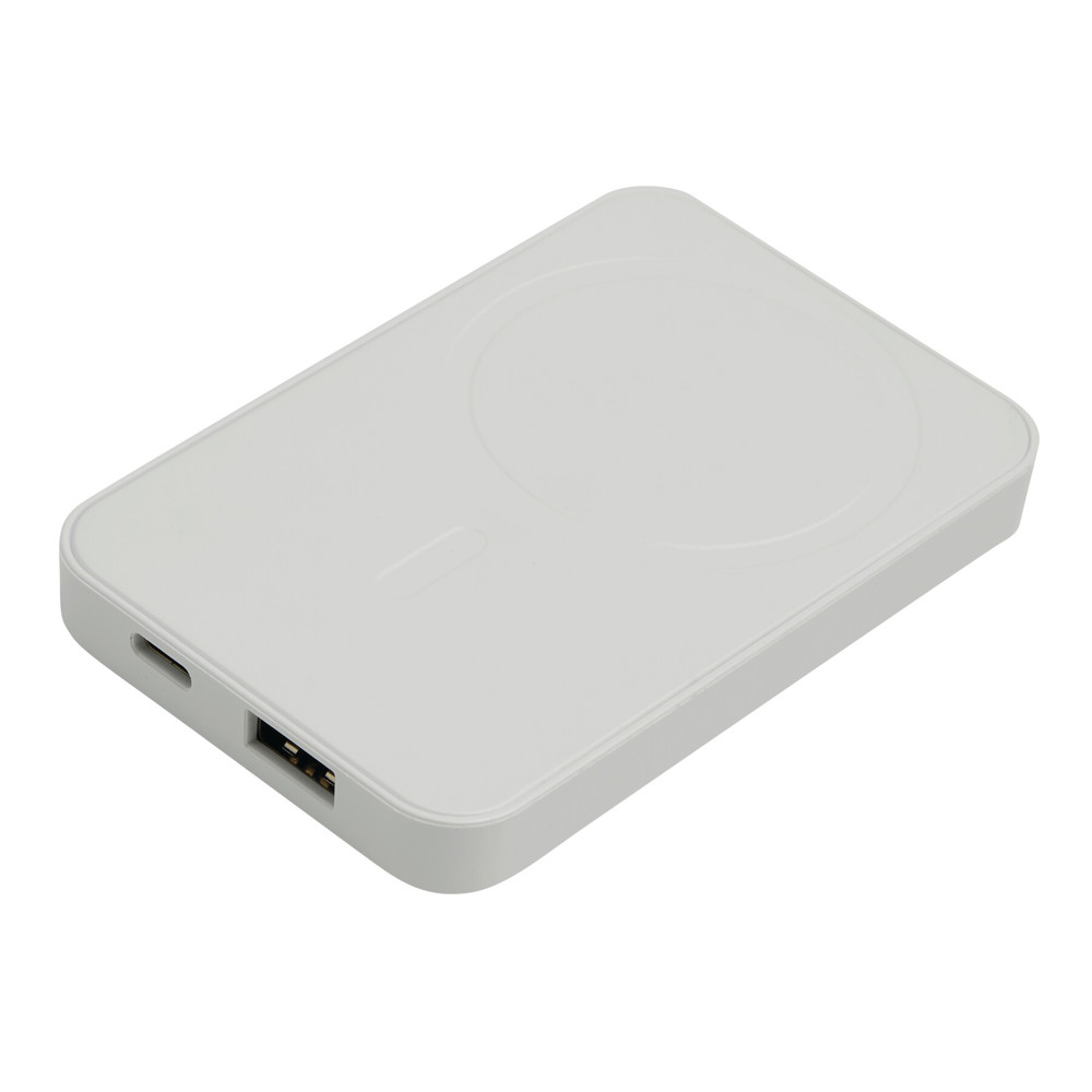 Powerbank MAGNET: geeignet für Smartphones und USB-betriebene Geräte, kabelloses Aufladen des Gerätes durch Auflegen auf die Kontaktfläche (Gerät muss für induktives Laden gerüstet sein), dank Magnetkraft hält das Gerät an der Powerbank (geräteabhängig), inkl. USB-Ladekabel mit USB Typ C Stecker (Länge: ca. 30 cm), mit Ladestandanzeige in Prozent, Ein- und Ausschalter, 1 USB Typ C Eingang und 1 USB Typ A Ausgang, Eingangsleistung: 5V/2A, Ausgangsleistung: 5V/2A, Kapazität: 5.000 mAh, leistungsstarker Lithium-Akku, in Box