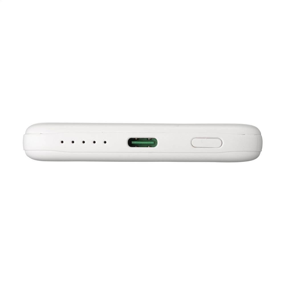 Magnetische, kabellose 15-W-Powerbank. Das Gehäuse besteht zu 100% aus GRS-zertifiziertem recyceltem Post-Consumer-ABS. Mit eingebautem Polymer-Li-Ionen-Akku (5000 mAh). Befestigen Sie das Ladegerät an der Rückseite Ihres Mobiltelefons, um Ihr Gerät aufzuladen. Kompatibel mit allen mobilen Geräten, die das kabellose Aufladen per QI unterstützen. Leistung: 15W. Bei anderen Handys kann es als normales Ladegerät verwendet werden. USB-C Eingang: 5V⎓3A, 9V⎓2.22A. USB-C Ausgang: 5V⎓3.0A 9V⎓ 2.22A 12V⎓1.67A. Inklusive USB-C/USB-C-Ladekabel aus recyceltem TPE und Gebrauchsanweisung. GRS-zertifiziert. Gesamtes recyceltes Material: 21%. Verpackt pro Stück.