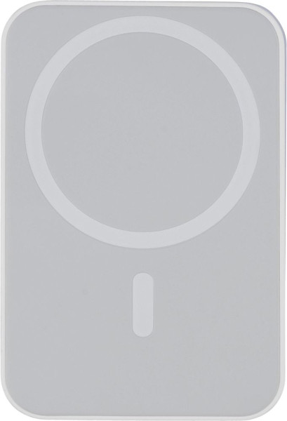 Recycelte ABS-Powerbank verfügt über ein kabelloses Ladegerät, einen 5.000-mAh-Li-Ionen-Akku und einen 15-W-magnetischen kabellosen Ladeausgang (MagSafe-kompatibel). Der Typ-C-Eingang unterstützt bis zu 20 W und der Typ-C-Ausgang DC5V/3A, DC9V/2,22A und DC12V/1,67A. Sie ist mit einem Überhitzungs-, Kurzschluss-, Überspannungs- und Überstromschutz ausgestattet. Sie schaltet sich bei Überhitzung automatisch ab. Sie enthält einen zusätzlichen Metallring mit Kleberückseite, um das kabellose Laden von Nicht-MagSafe-Geräten zu unterstützen. An der Seite befindet sich ein Etikett mit dem Recycled ABS (RABS)-Logo. Sie ist einzeln verpackt in einem braunen Karton mit Seidenpapier im Inneren.