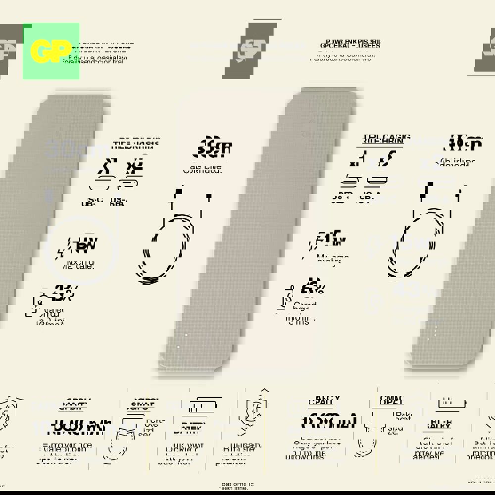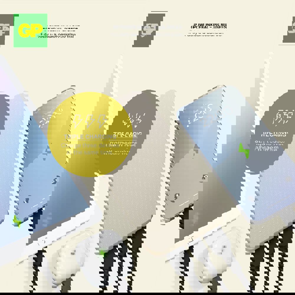 Die GP PowerBank kombiniert eine zuverlässige Stromversorgung mit einem eleganten Design. Mit einer Kapazität von 10000 mAh ermöglicht sie das gleichzeitige Laden von drei Geräten über 2x USB-A und 1x USB-C. Die Powerbank verfügt über einen 8-fachen Schutz für eine sichere Nutzung und garantierte Langlebigkeit. Ideal für den professionellen und alltäglichen Gebrauch.