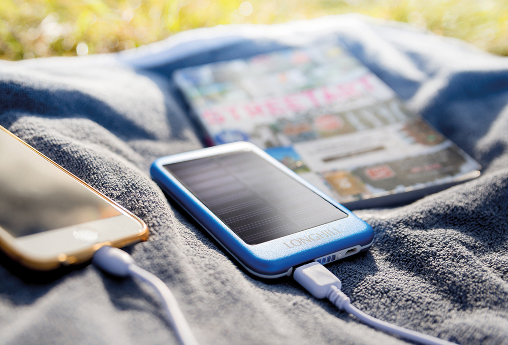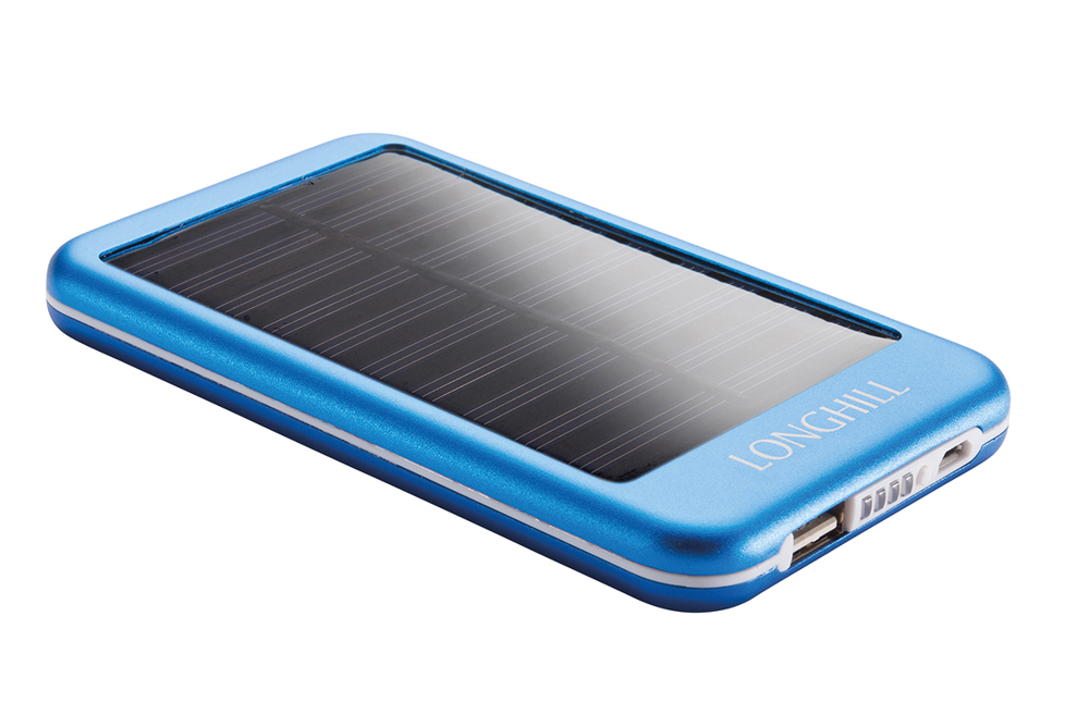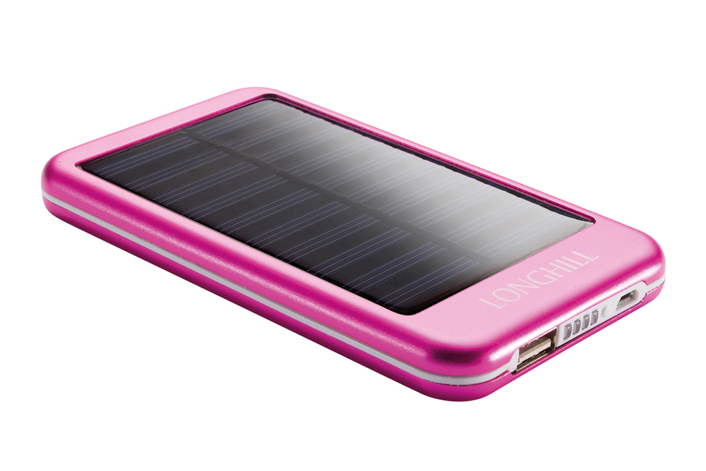 Ausstattung, Kapazität: 4000 mAh, Batterie: Lithium-Ion, Input: DC 5V 500 - 1000 mAh, Output: DC 5V 500 - 1000mAh, Ladezeit: ca. 4-8 Stunden, inkl. Solarpanele zur Unterstützung des Ladevorgangs, RoHs Material / CE-geprüft, Farben: schwarz, silber, blau, pink