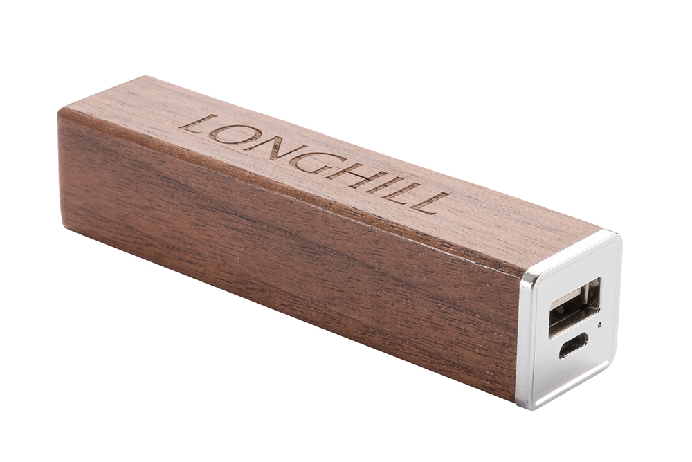 Ausstattung, Kapazität: 2000 mAh bis 3.000 mAh möglich, Batterie: Lithium-Ion, Input: DC 5V 500 - 1000 mAh, Output: DC 5V 500 - 1000mAh, Ladezeit: ca. 4-8 Stunden, RoHs Material / CE-geprüft, Farben: Walnuss oder Ahorn