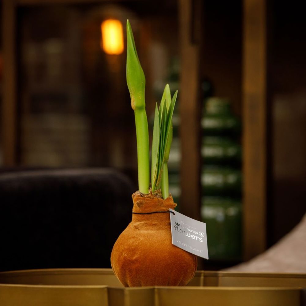 No Water Flowers® sind ein luxuriöses, wachsendes und blühendes Geschenk. Diese No Water Flowers Velvet Touchz®-Variante verfügt über eine samtige Oberfläche, die der Zwiebel ein weiches Gefühl und ein luxuriöses Aussehen verleiht. Diese speziell ausgewählten und getesteten Amaryllis-Zwiebeln haben genug Energie, um ohne Wasser zu wachsen und zu blühen. Authentische No Water Flowers® haben relativ kurze Blütenstiele, fallen nicht um und blühen garantiert. Jede No Water Flowers® wird sorgfältig gereinigt und perfekt gewachst. Dadurch erhält die Blumenzwiebel ein zeitgemäßes und modisches Aussehen.