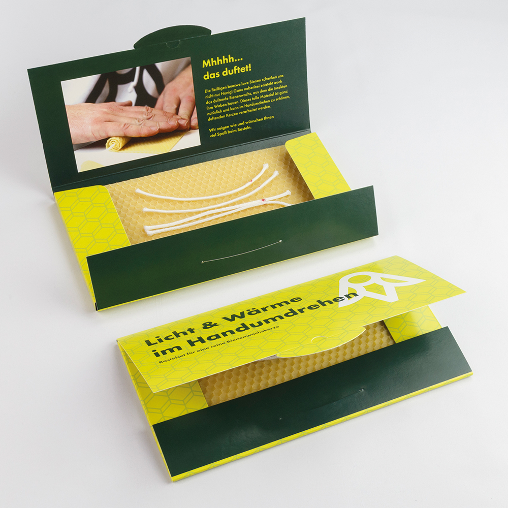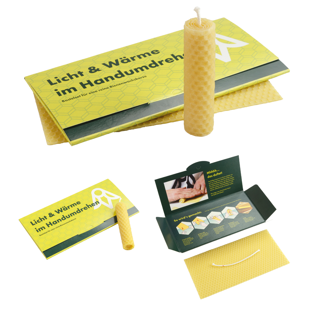 Kerzenbastelsets für eine reine Bienenwachskerze. Ein Gruß voller Wärme und Licht an Ihre Kunden oder Mitarbeiter.