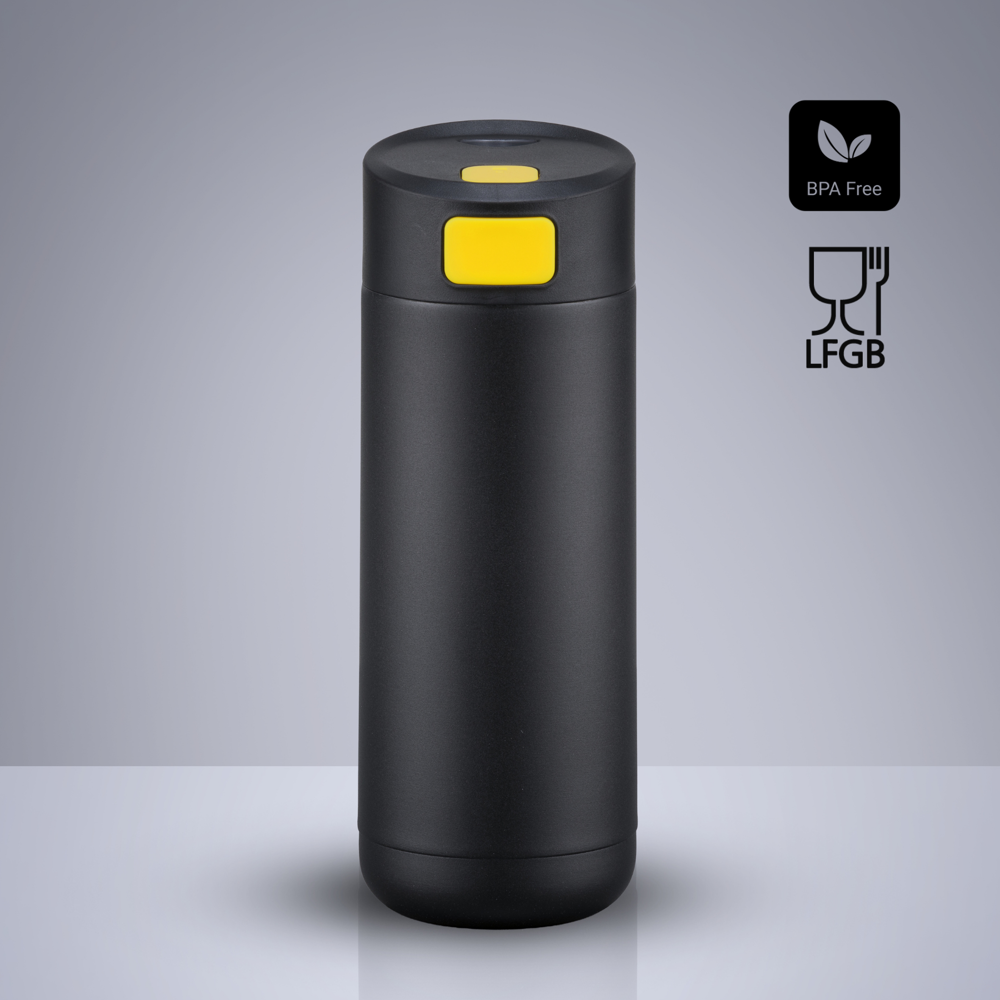 Ein langlebiger Thermobecher aus hochwertigem POSCO-Edelstahl für hervorragende Temperaturhaltung. Mit auslaufsicherem Deckel und farbigem Verschluss für sicheres und praktisches Trinken unterwegs. BPA-frei und LFGB-zertifiziert, sicher für heiße und kalte Getränke.