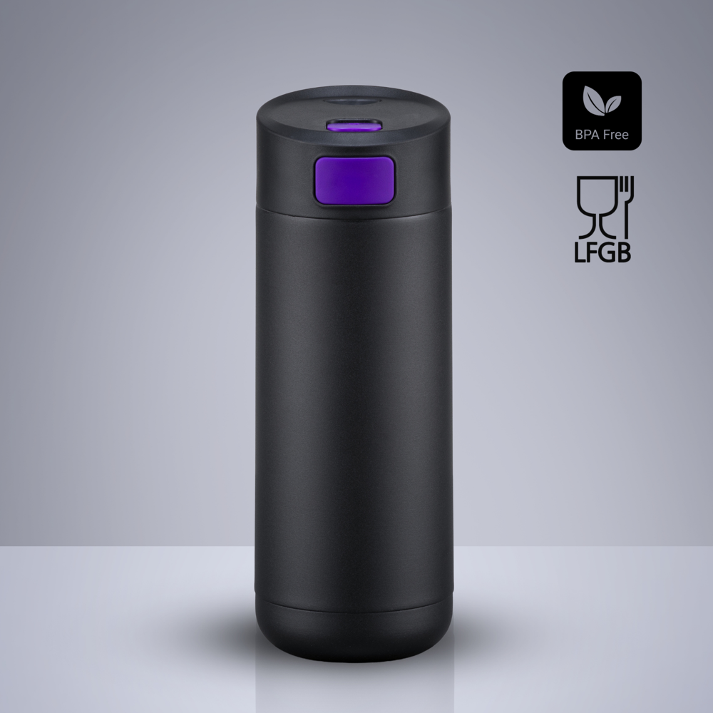 Ein langlebiger Thermobecher aus hochwertigem POSCO-Edelstahl für hervorragende Temperaturhaltung. Mit auslaufsicherem Deckel und farbigem Verschluss für sicheres und praktisches Trinken unterwegs. BPA-frei und LFGB-zertifiziert, sicher für heiße und kalte Getränke.