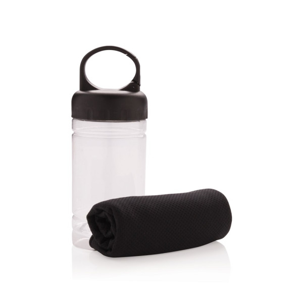 Mikrofaser Kühlhandtuch ( ca. 77x30cm) mit 98% Sun-Blocker-Funktion bis zu UV50+. Einfach etwas kühles Wasser zum Handtuch in die Dose geben und fertig ist die Erfrischung. Die Dose aus PP, der Deckel aus ABS und das ganze mit einem Karabiner, um sie bei allen Outdoor-Aktivitäten immer dabei zu haben.
