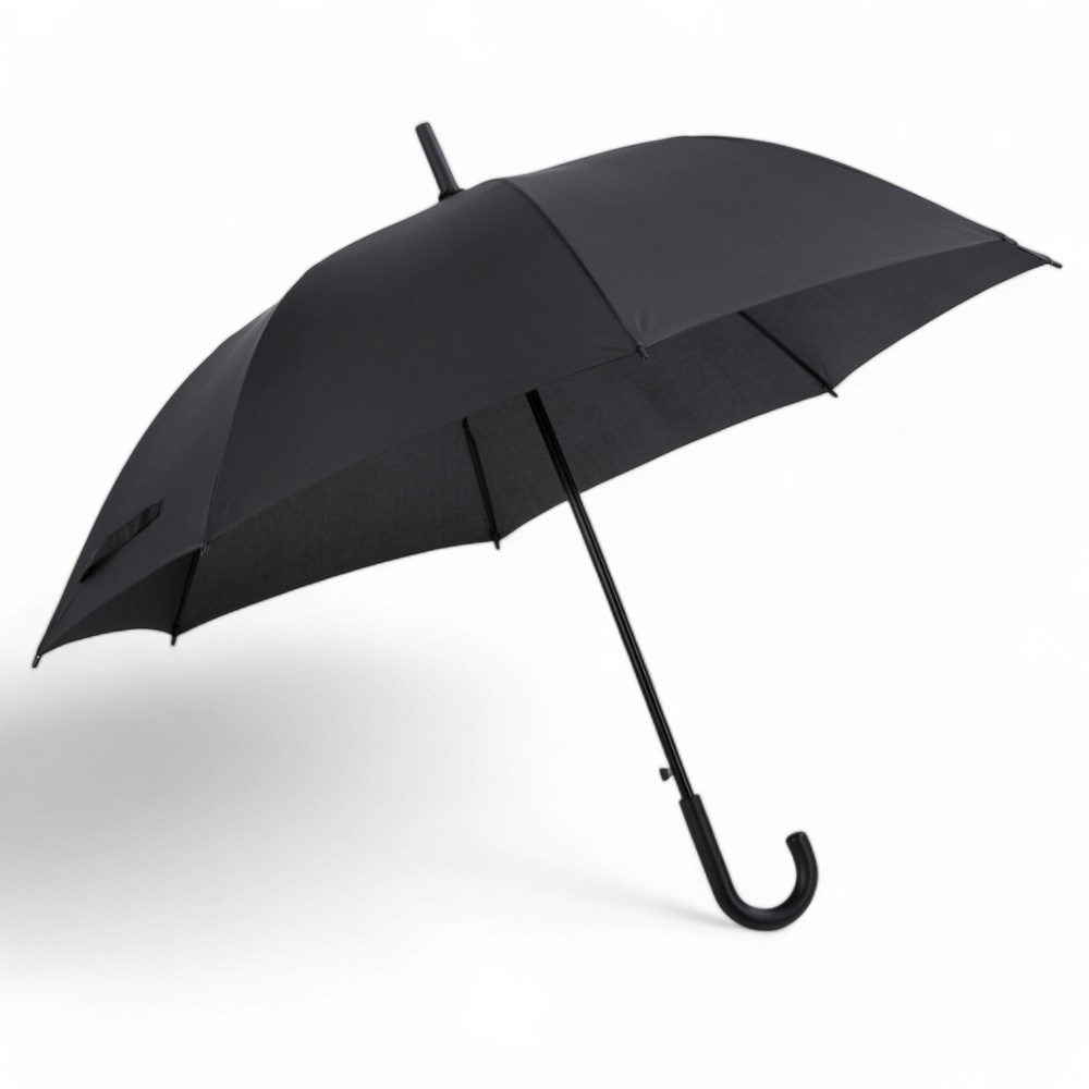 Ein klassischer 8-Panel-Schirm mit automatischer Öffnungsfunktion, absolut winddicht und trotz seiner Größe leicht. Hauptmaterial - 180T Polyester, Gestell und Schaft aus Kunststoff mit einer soliden Metall-Glasfaser-Oberfläche, die eine hohe Widerstandsfähigkeit gegen mechanische Beschädigungen aufweist. Der gebogene Griff liegt perfekt in der Hand und sorgt für eine komfortable Nutzung. Inklusive Schutzhülle.