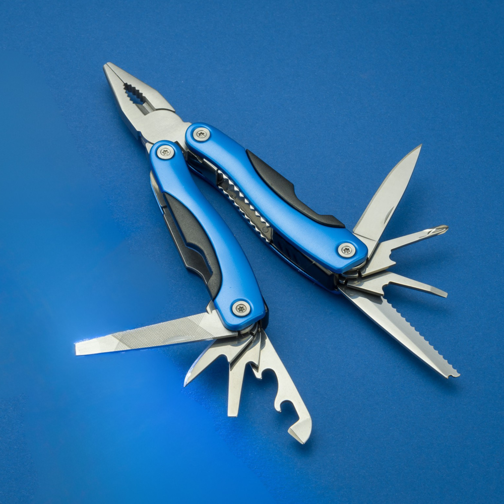 Ein sehr langlebiges Multifunktionswerkzeug aus Edelstahl. Enthält ein professionelles Federsystem und Safety-Funktion – ein Schutz gegen das ungewollte Schließen der Klingen. Das Produkt ist in einer Schutztasche verpackt.
