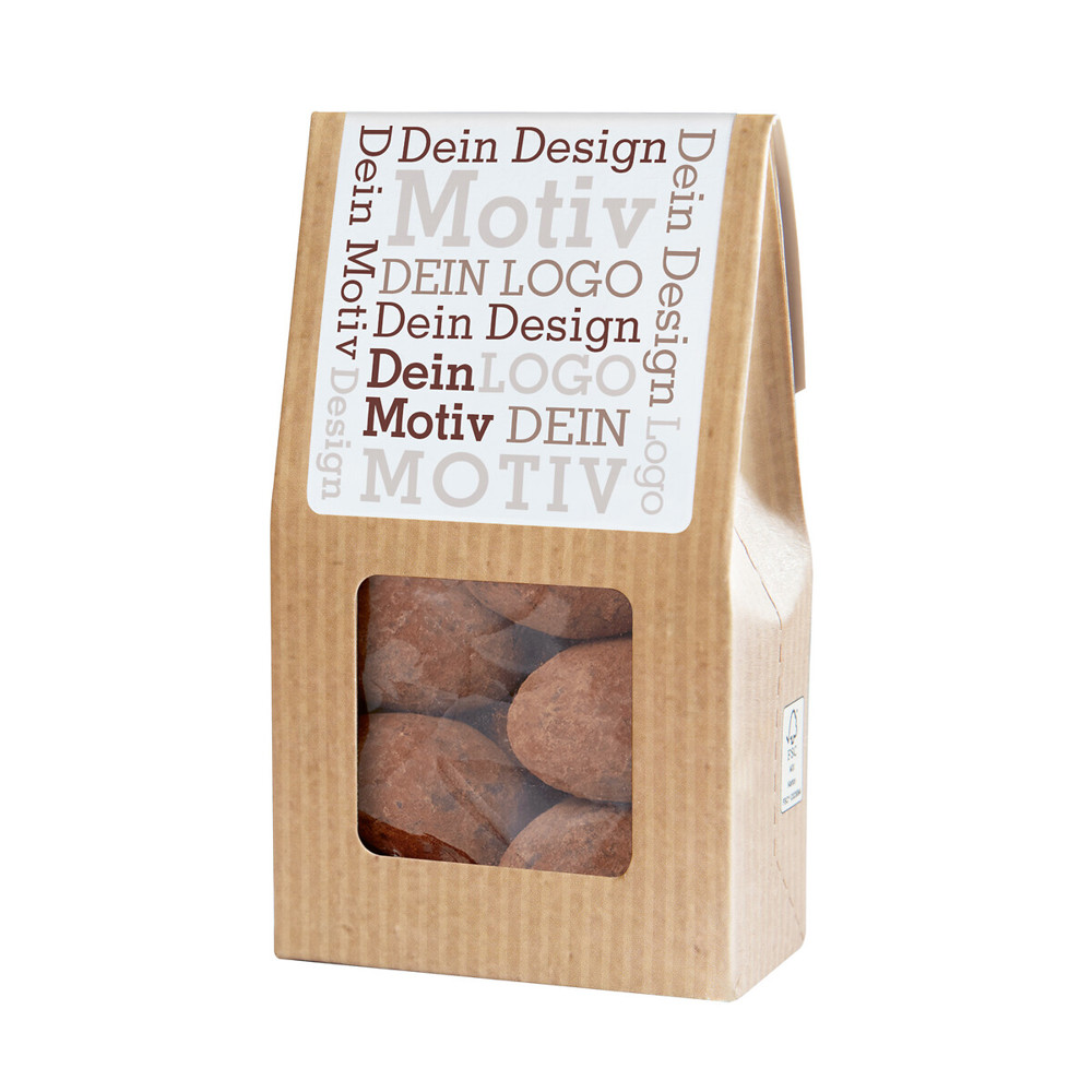 Ab 500 Stück mit Ihrem Motiv im 4c Druck auf dem Etikett der Faltschachtel, ab 2.500 Stück vollflächig bedruckt im Offsetdruck: Unser aufmerksamkeitsstarker Bestseller. Die Mini-Faltschachtel als nachhaltiges Premium-Giveaway. Gebrannte Mandeln mit einem Hauch Zimt. Der Klassiker erinnert mit seinem Karamell-Aroma an die Düfte auf dem Weihnachtsmarkt. Sie suchen eine andere Größe? Dieses Premium Präsent ist auch als Faltschachtel und Maxi Faltschachtel erhältlich.