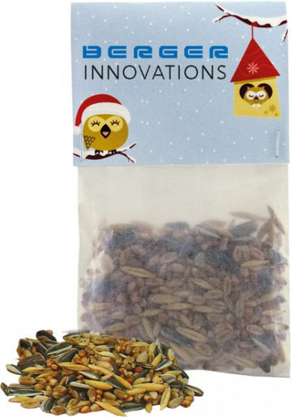 Ein sympathisches Giveaway nicht nur für Vogelliebhaber. 20 g Wildvogelfutter sind in der Pergamintüte enthalten. Ihr Werbeeindruck oder eine individuelle Gestaltung des Headers ist ab 250 Stück möglich. Inhalt: Wildvogelfutter (ca. 20 g)