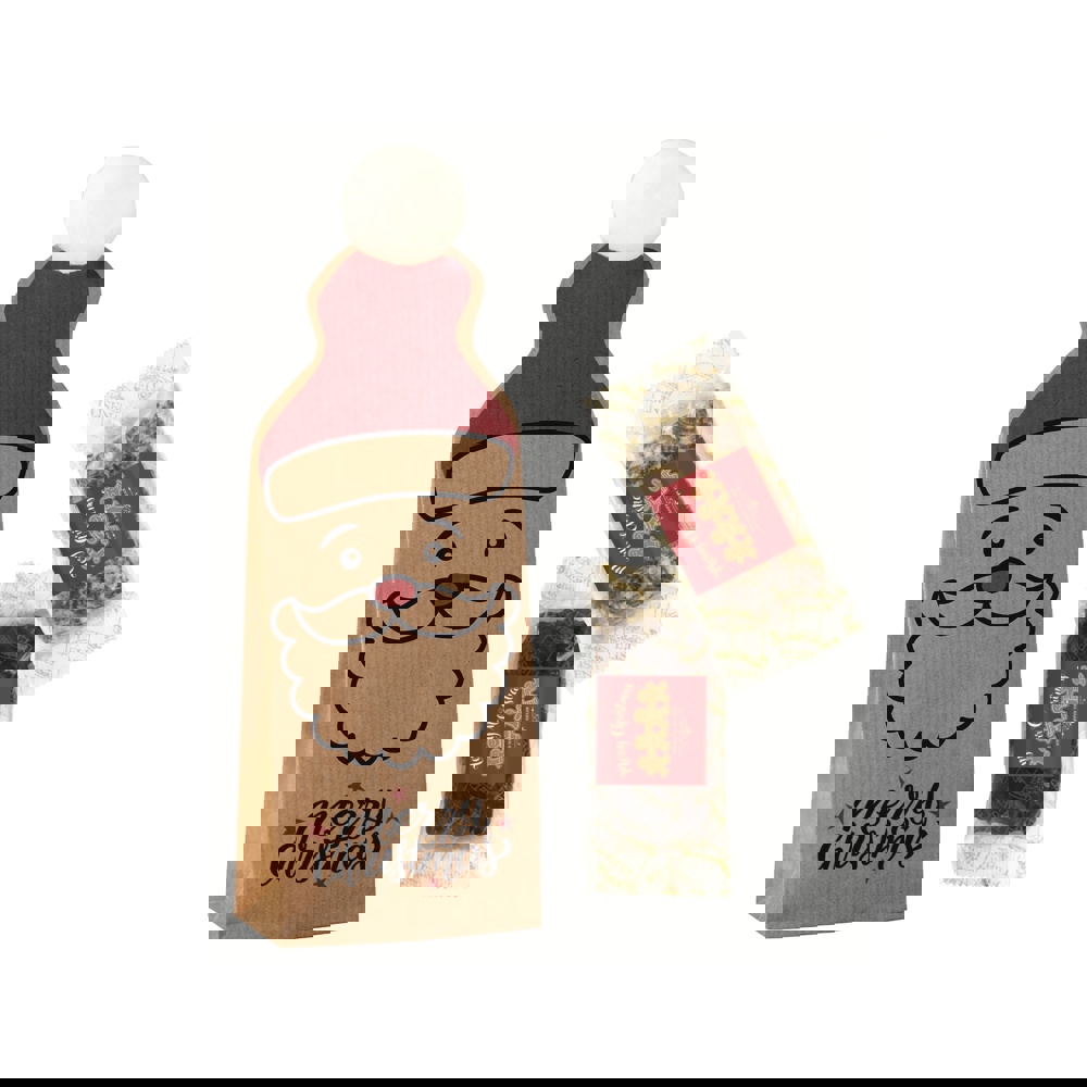 Christmas Bag No. 3 mit Standard-Druck "Merry Christmas" gefüllt mit 2 Elisenlebkuchen je 25 g. • Die ultimative Weihnachtstüte aus Papier! Ein schelmischer Blick, rote Mütze, ein Bommel aus reiner Baumwolle - so sieht ein ökologisch wertvoller Hingucker aus, gefüllt mit 1 Schokoladen-Elisen-Lebkuchen 25 g und 1 Elisenlebkuchen glasiert 25 g. Die Christmas Bag kann optional mit einem 4c Druck, 1c Druck oder einem 4c Aufkleber individualisiert werden.